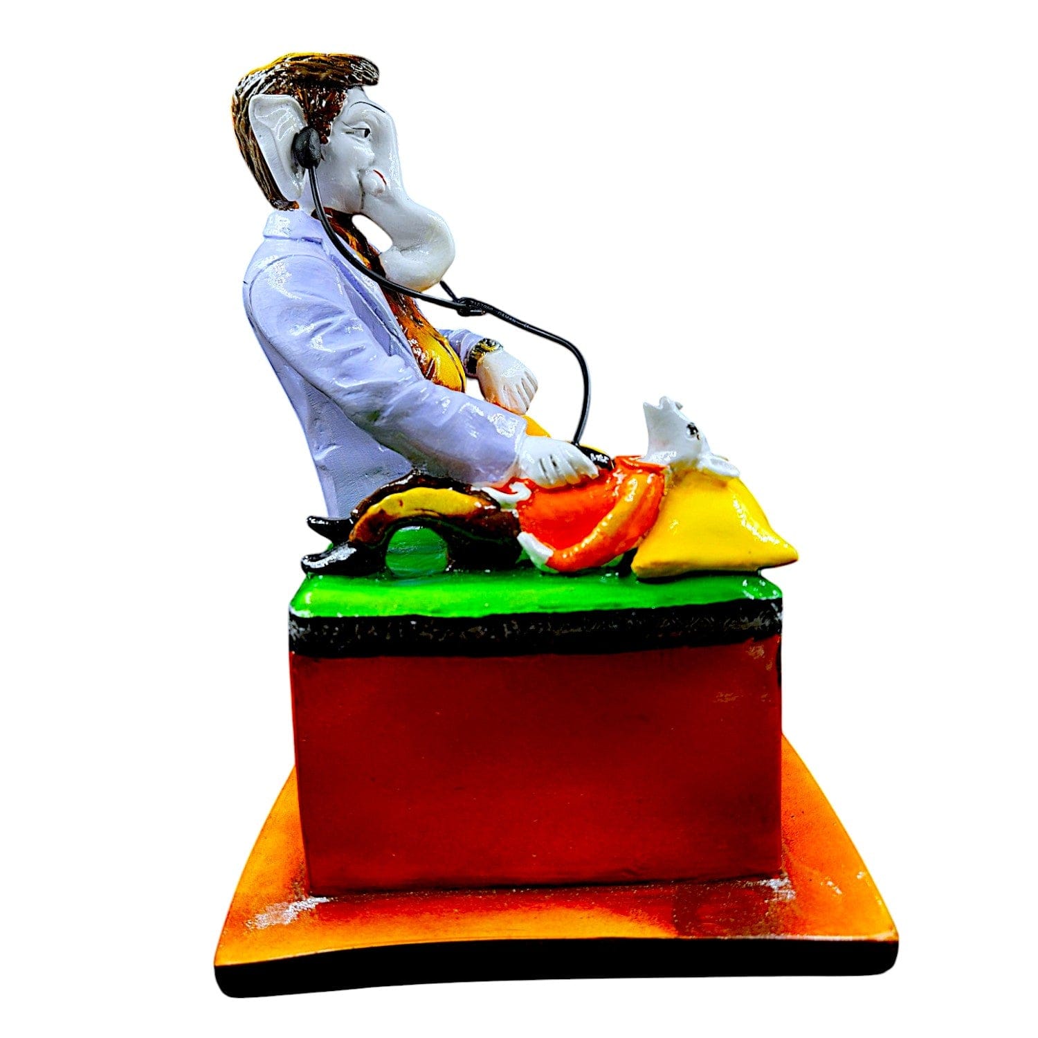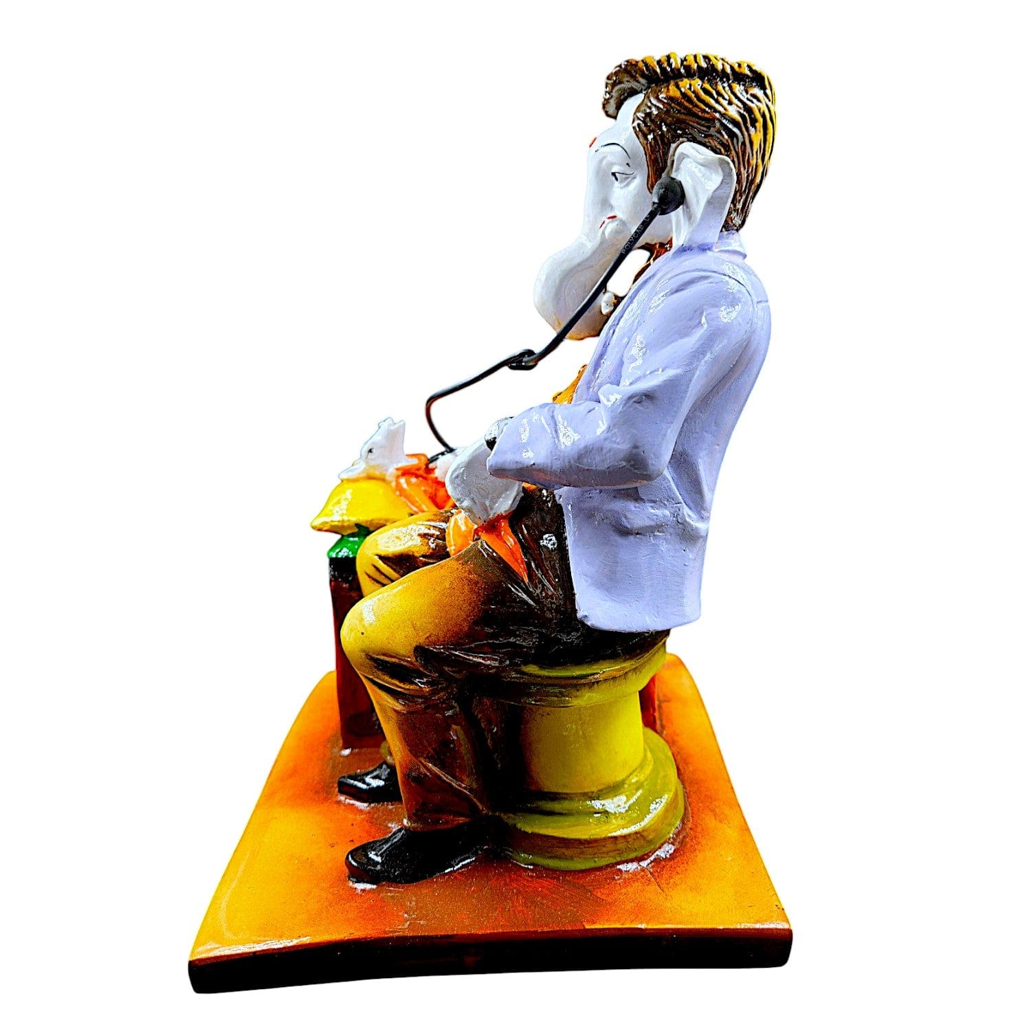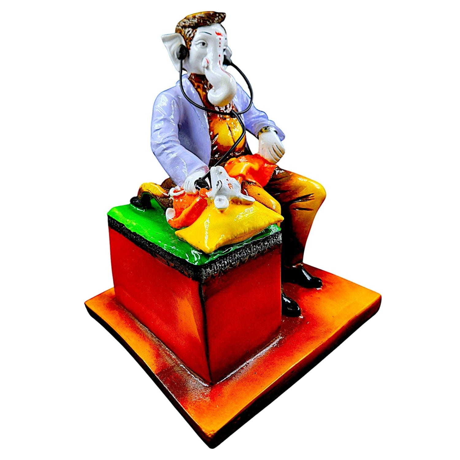 Unique, this Ganesha idol is expertly crafted from resin-crafted. A meaningful gift for diwali or special occasions, enhancing your office desk, bookshelf or meditation area. Our beautiful Ganesh idol adds spiritual grace to your home décor and makes an ideal Diwali or housewarming gift. Divine Meets Healing This Doctor Ganesha figurine uniquely blends spirituality and profession perfect for gifting to doctors, medical students, or anyone in healthcare. Eye- Hand- Finish Crafted from high- resin-crafted, this figurine features vibrant colours and detailed details, making it a standout piece for shelves, desks, or pooja spaces. Ideal Home Decor for Clinics and Hospitals Place it in waiting rooms, consultation desks, or reception areas to add positivity, excellent vibes, and a personal touch of devotion. Thoughtful Gift for Medical Graduates and Healers A one-of-a-kind and meaningful gift for white coat ceremonies, graduation, birthdays, or appreciation days for doctors and nurses. A Blend of Art and Faith Symbolizing wisdom, protection, and prosperity, this contemporary version of Lord Ganesha as a doctor inspires both devotion and admiration. Durable Resin-Crafted Craftsmanship Made from high-quality- resin-crafted, it' lightweight, long- and easy to clean Designed to complement modern and traditional interiors. Perfect for devotees looking for orange colour ganesh murti, orange colour ganpati and ganesha with laptop, this Ganesh statue brings blessings and elegance to your space.