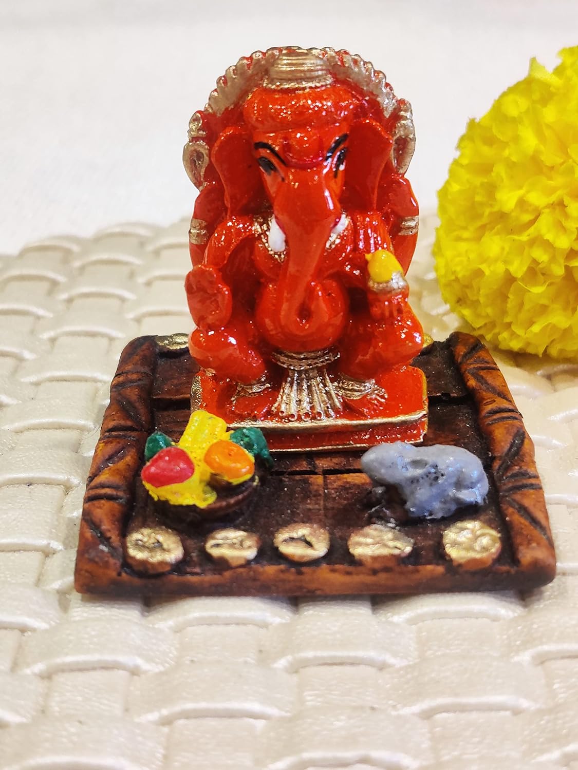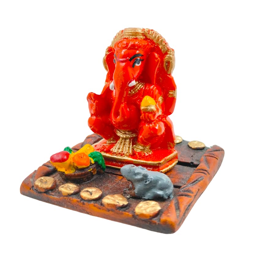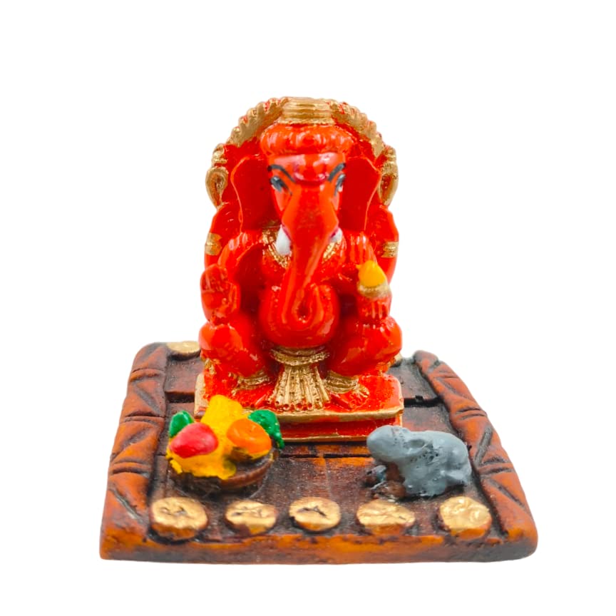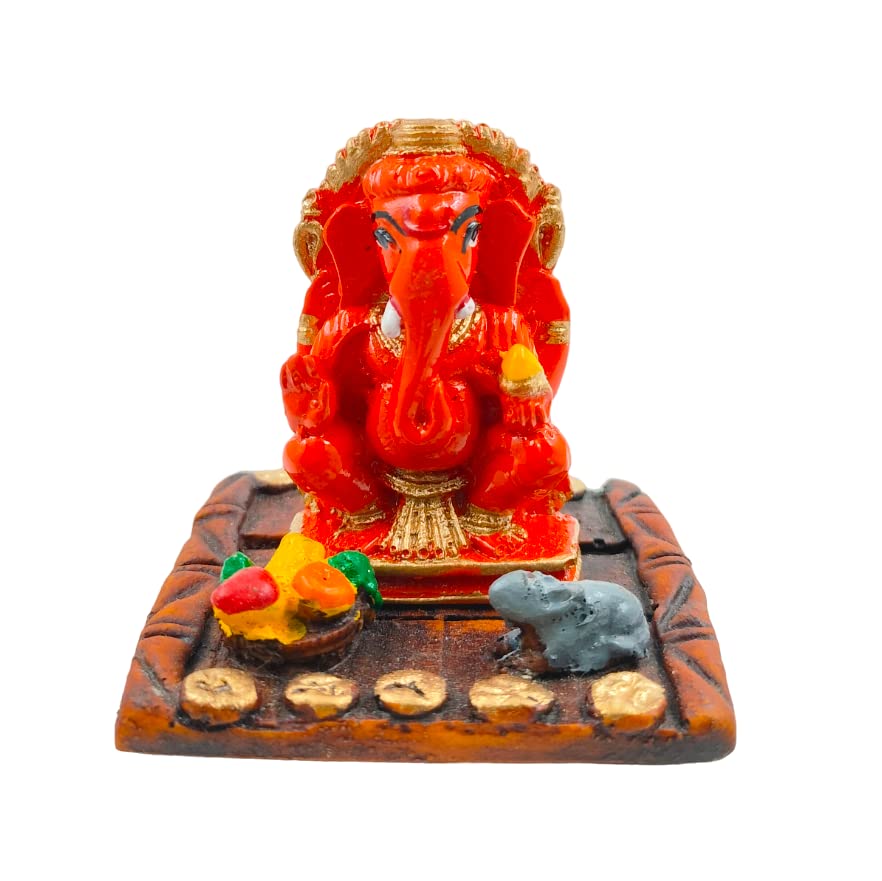 One-of-a-kind, this Ganesha idol is skillfully crafted from durable resin. Makes a charming present for loved ones, adding elegance to your hallway, bedroom or meditation corner. Our beautiful Ganesh idol adds spiritual grace to your home décor and makes an ideal Diwali or housewarming gift. Radiant Auspiciousness: The vibrant red coloUr symbolizes energy, passion, and is considered highly fortunate, bringing a powerful and positive aura to any space. Symbolic Companionship and Abundance: Accompanied by his loyal mouse (Mushak) and a plate of offerings, representing humility, the fulfillment of desires, and abundant blessings. Striking and Striking Presence: Its vivid color and detailed design make it a captivating focal point, adding a dynamic spiritual and aesthetic touch to your home or office. Remover of Obstacles (Vighnaharta): Invokes blessings for strength, wisdom, success in new ventures, and the removal of hurdles from your path, ensuring smooth progress. Versatile Fortunate Decoration: Profound and Celebratory Gifting: An incredibly meaningful gift for housewarmings, festivals like Ganesh Chaturthi or Diwali, birthdays, or for anyone embarking on a new journey, symbolizing power, protection, and prosperity. Durable and Easy Care: Crafted from high- polyresin, ensuring lasting beauty and vibrant color; simply wipe with a soft, dry cloth to maintain its radiant look. Designed to complement modern and traditional interiors. Perfect for devotees looking for orange colour ganesh murti, orange colour ganpati and ganesha with laptop, this Ganesh statue brings blessings and elegance to your space.