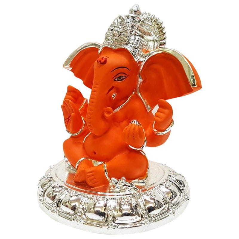 Unique and contemporary, this Ganesha idol is exquisitely crafted from ceramic. An ideal gift for housewarmings and festivals, suiting any living room, meditation area or office. Our beautiful Ganesh idol adds spiritual grace to your home décor and makes an ideal Diwali or housewarming gift. Vibrant and Divine Presence: Features Lord Ganesha in a striking orange hue, symbolizing energy, enthusiasm, and the fortunate start to any endeavour. Graceful Silver Accents: Adorned with lustrous silver plating on the crown, ears, and base, adding a sophisticated and contemporary touch to the classic statue. Serene and Majestic Posture: Depicts Ganesha in a classic meditative or blessing posture, radiating wisdom, contentment, and the power to remove obstacles. Contemporary Spiritual Decoration: Its distinctive color combination makes it a perfect fit for both classic and contemporary interiors, enhancing your puja space, living room, or office. Distinctive and Fortunate Gift: An excellent choice for housewarmings, festivals like Ganesh Chaturthi, new beginnings, or for anyone seeking a blend of contemporary style and spiritual blessings. Infuses Your Space with Positive Energy: This captivating statue acts as a constant source of inspiration and tranquility, filling your surroundings with peace, excellent fortune, and a vibrant aura. A wonderful gift for loved ones and collectors. Perfect for devotees looking for orange colour ganesh murti, orange colour ganpati and ganesha with laptop, this Ganesh statue brings blessings and elegance to your space.