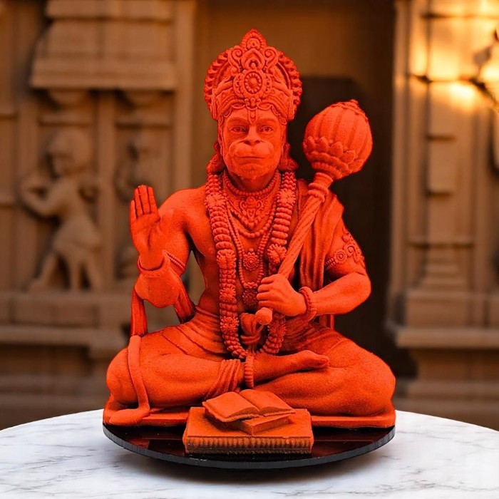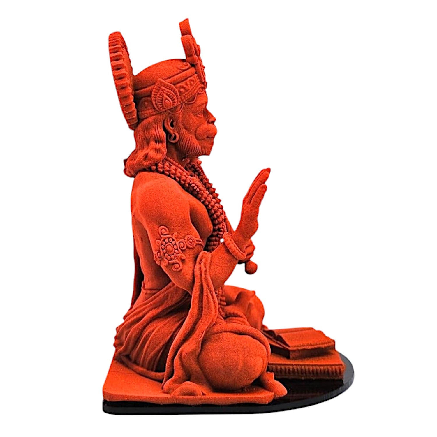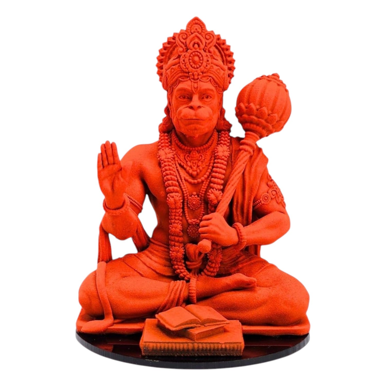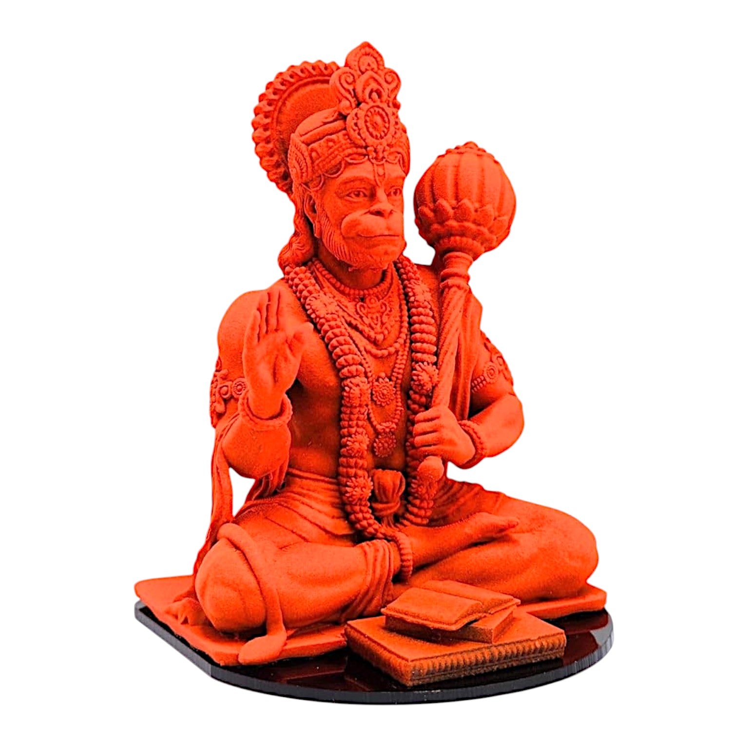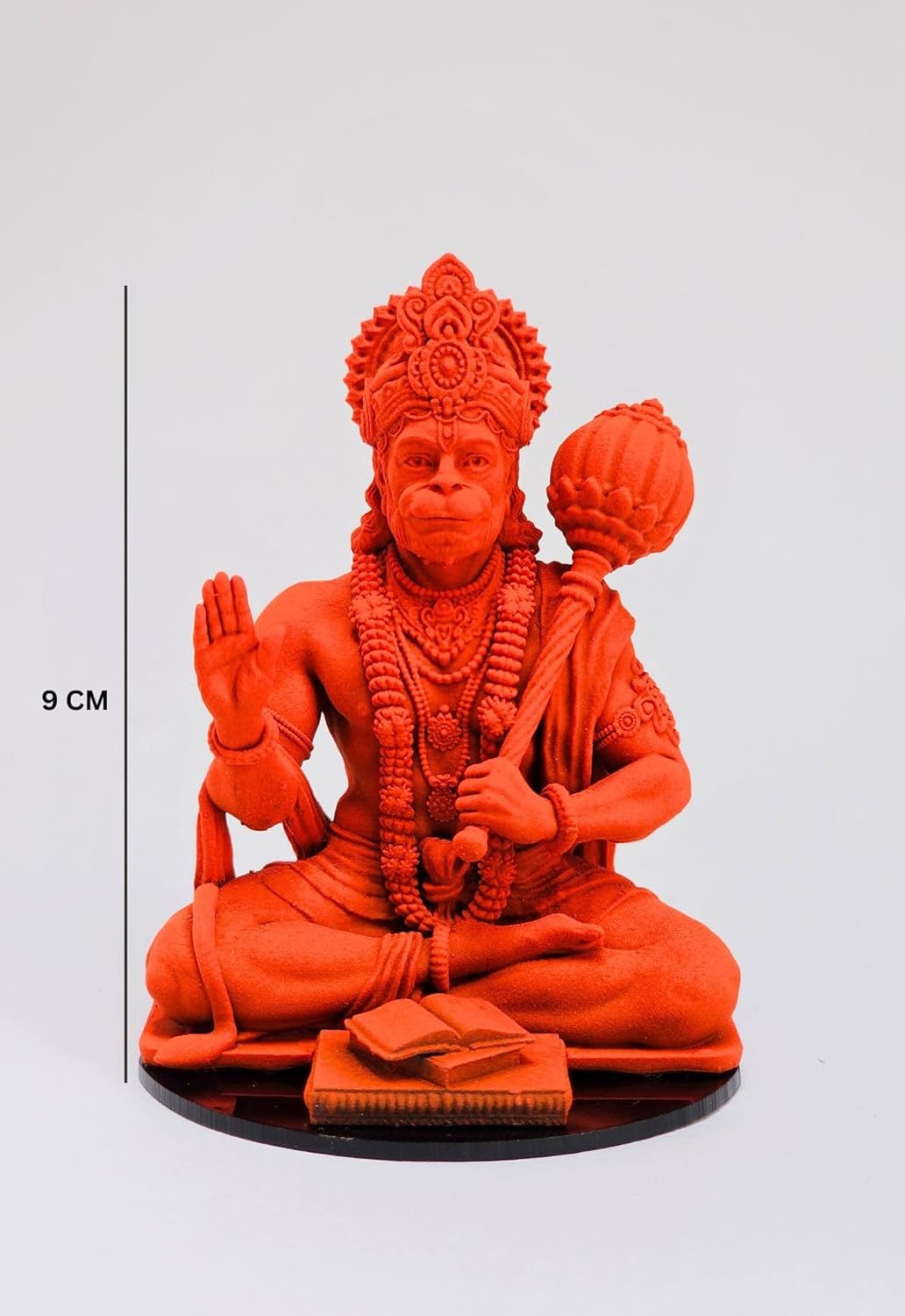 Refined, this artistic figurine is beautifully made from handcrafted resin. An excellent choice for spiritual and decorative gifting, gracefully decorating your table, shelf or altar. Celebrate devotion with this Hanuman idol – a striking home décor piece and a meaningful gift for festivals like Diwali and Navaratri. Powerful Divine Representation: This Hanuman figurine is shown seated gracefully with his Gada (mace) and Ramayan scriptures symbolizing knowledge, power, and unwavering devotion to Lord Rama. Vibrant Red Finish for Sacred Vibes: The deep saffron- color represents energy, faith, and spiritual protection, making it High- Resin-Crafted Material: Expertly sculpted from durable resin-crafted with detailed detailing lightweight, non- and long- Divine Gifting Idea: A meaningful gift for religious occasions like Hanuman Jayanti, Ram Navami, Diwali, and housewarming events suitable for both men and women. Compact and Versatile Placement: Perfectly sized for car dashboards, office desks, study tables, or pooja shelves for spiritual presence on- or at home. Enhances the ambiance of living rooms, bedrooms, and offices. An excellent choice for hanuman home decor, hanuman gift ideas and panchmukhi hanuman for entrance, this Hanuman idol blends sacred symbolism with striking design—