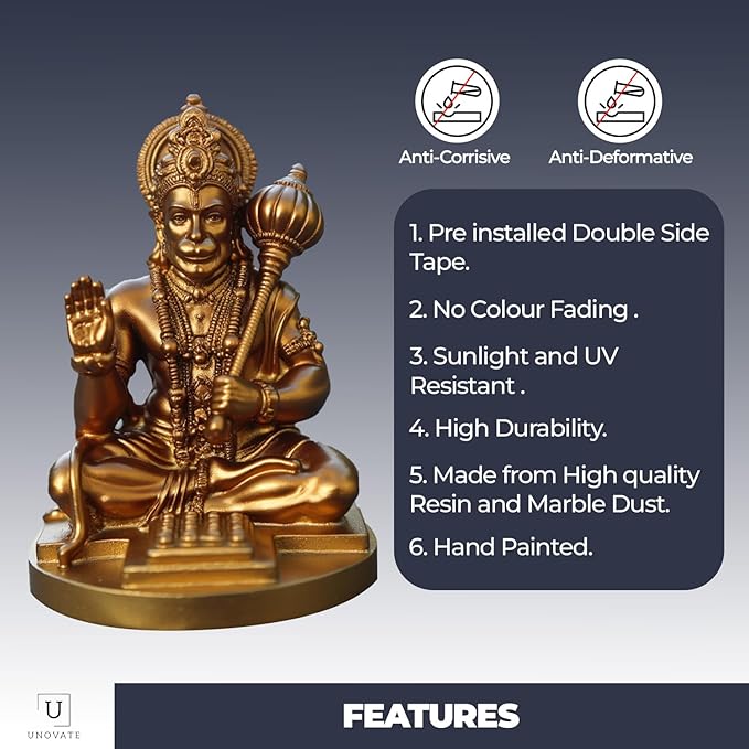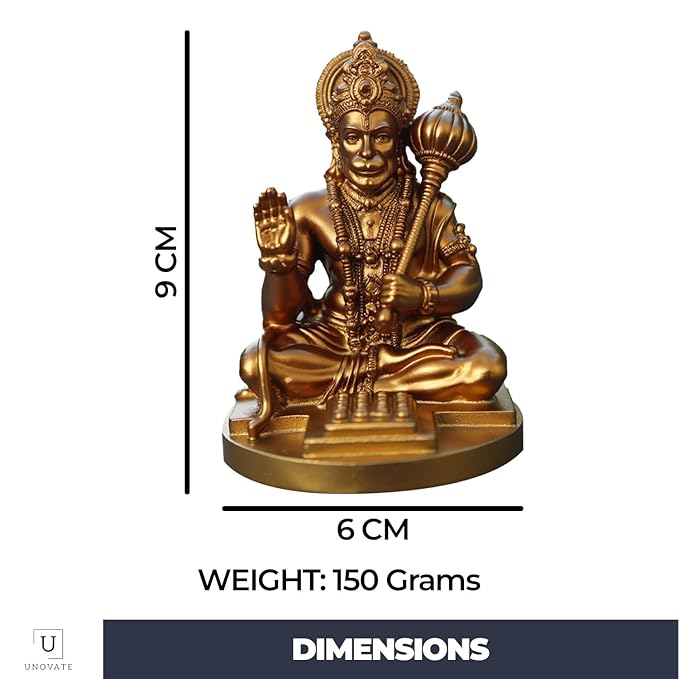 Chic and luxurious, this artistic figurine is skillfully crafted from premium materials. A heartwarming gift for family and friends, brightening up any nook, workspace or spiritual corner. Celebrate devotion with this Hanuman idol – a striking home décor piece and a meaningful gift for festivals like Diwali and Navaratri. An excellent choice for hanuman home decor, hanuman gift ideas and panchmukhi hanuman for entrance, this Hanuman idol blends sacred symbolism with striking design—