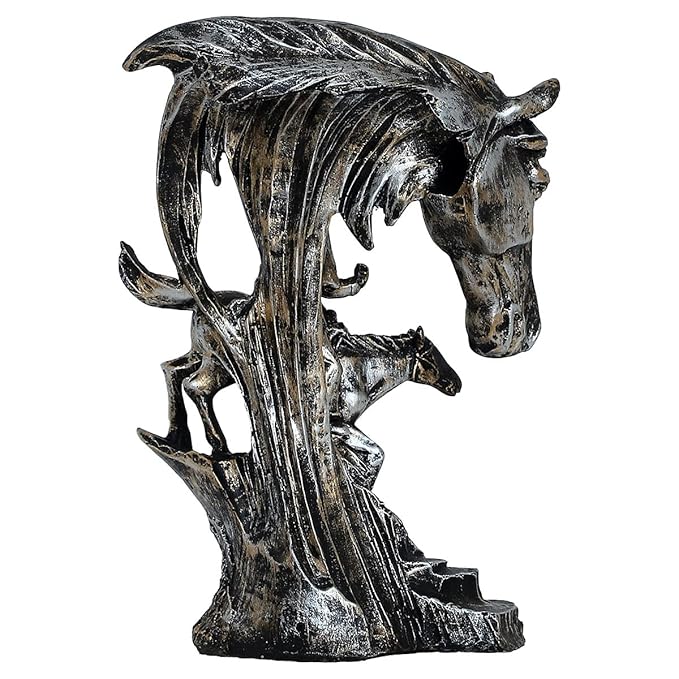 Expressive, this animal decor piece is skillfully crafted from durable resin. Makes a charming present for loved ones, adding elegance to your hallway, bedroom or meditation corner. Western Cowboy on Horseback Design: This striking figurine depicts a cowboy riding a horse, with a larger, stylized horse head as a dramatic backdrop. Metallic Silver and Gold Finish: The combination of silver and gold- metallic finishes gives this piece a rustic yet eye- look. Crafted from Durable Resin-Crafted: Made from high- resin-crafted, ensuring lasting beauty and detailed detailing in the figures and horses. Versatile Western Decoration: Perfect for displaying on shelves, mantels, desks, or tables in living rooms, offices, or themed rooms. Emblem of the Wild West: This figurine evokes the spirit of cowboys, adventure, and the American frontier. Great for Western Enthusiasts: A thoughtful and one-of-a-kind gift for those who love cowboy culture, horses, or rustic decoration. Detailed Detailing: Notice the details in the cowboy' attire, the horses' features, and the overall design. An elegant addition to your home or workspace. Designed for lovers of animal decor, bird figurines and bird figurine, this figurine adds playful charm to any space.