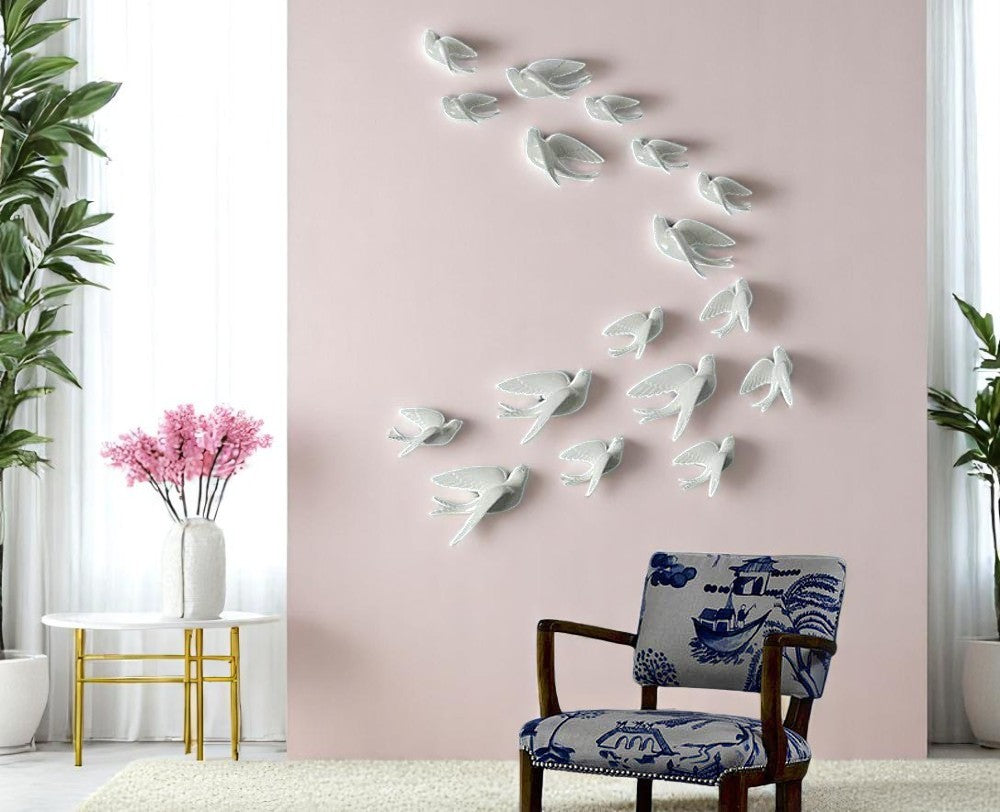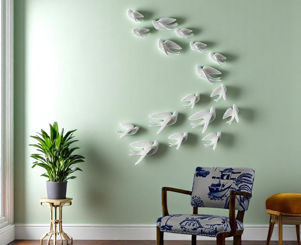 Chic White Flying Birds Wall Home Decor Collection – 17 Resin – Unique Decor Piece
