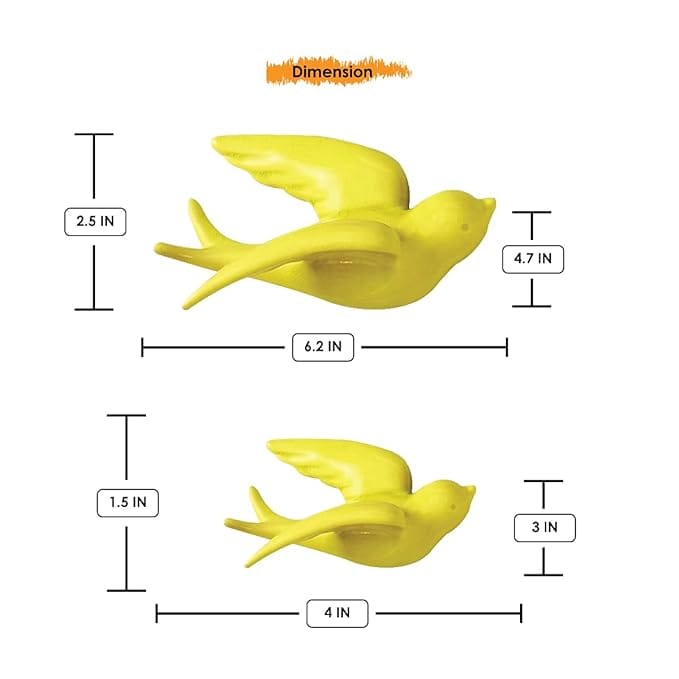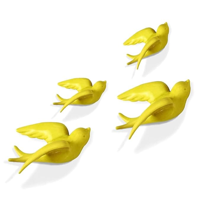 Graceful and opulent, this wall décor piece is meticulously crafted from resin-made. Perfect for festive gifting and celebrations, bringing beauty to your home temple, office desk or study. Set of Four Cheerful Yellow Swallows: This set includes four individual yellow swallow bird decorations in graceful flying poses, creating a bright and lively wall display. Lightweight and Durable Resin-Crafted: Crafted from high- resin-crafted with a lovely yellow finish, these swallows are lightweight yet sturdy, ensuring easy application and long- beauty. Versatile Sunny Home Decor: Perfect for living rooms, bedrooms, nurseries, kitchens, or any space that needs a touch of cheerful and nature- art. Easy to Apply: Each swallow can be easily attached to the wall using adhesive (please check if adhesive is included or if you need to provide your own). Create a Dynamic Wall Feature: Arrange the swallows to create a visually appealing and energetic sense of flight across your wall. Cheerful Yellow Finish: The sunny yellow colour adds a touch of happiness and warmth to any interior design style. Great for Cheerful Gifting: A thoughtful and uplifting gift for housewarmings, new beginnings, or anyone who appreciates colourful home home decor. Enhances the ambiance of living rooms, bedrooms, and offices. Designed for lovers of animal decor, bird figurines and bird figurine, this figurine adds playful charm to any space.