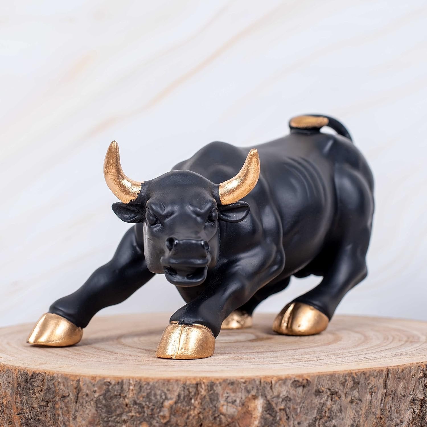 Graceful Wall Street Bull Replica – Resin Decor Piece for Home Home Decor, 9 Inches (Black) – Artful Decor Piece