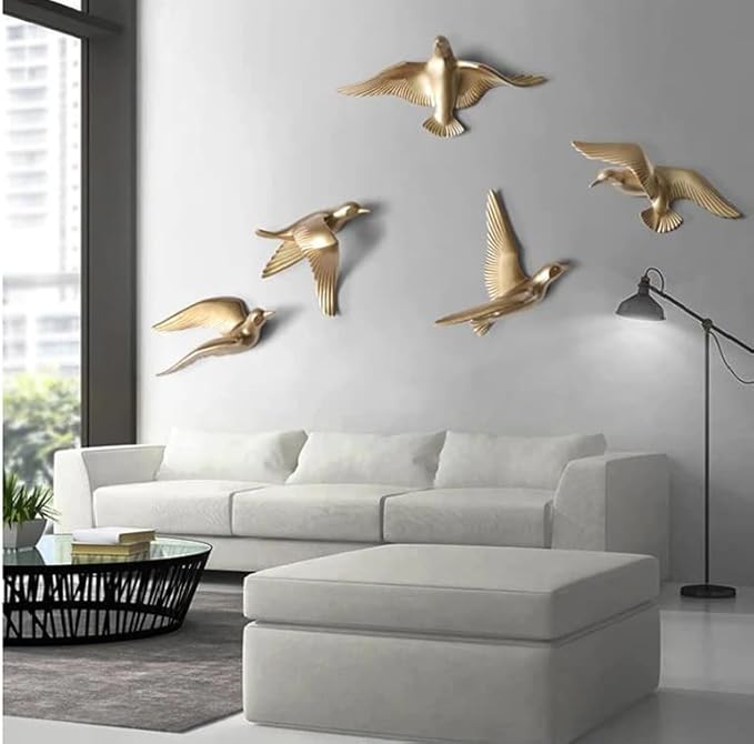Timeless and modern, this wall décor piece is beautifully made from handcrafted resin. An excellent choice for spiritual and decorative gifting, gracefully decorating your table, shelf or altar. Set of Five Graceful Gold Birds: This set includes five individual gold bird decorations in graceful flying poses, creating a fashionable and luxurious wall display. Lightweight and Durable Resin: Crafted from high- resin with a stunning gold finish, these birds are lightweight yet sturdy, ensuring easy application and long- beauty. Versatile Metallic Home Decor: Perfect for living rooms, dining rooms, offices, or any space that needs a touch of glamorous and nature- art. Easy to Apply: Each bird can be easily attached to the wall using adhesive (please check if adhesive is included or if you need to provide your own). Create a Stunning Wall Feature: Arrange the birds to create a visually appealing and dynamic sense of flight across your wall. Luxurious Gold Finish: The graceful gold color adds a touch of sophistication and glamour to any interior design style. Bring charm and elegance to your décor. Designed for lovers of animal decor, bird figurines and bird figurine, this figurine adds playful charm to any space.