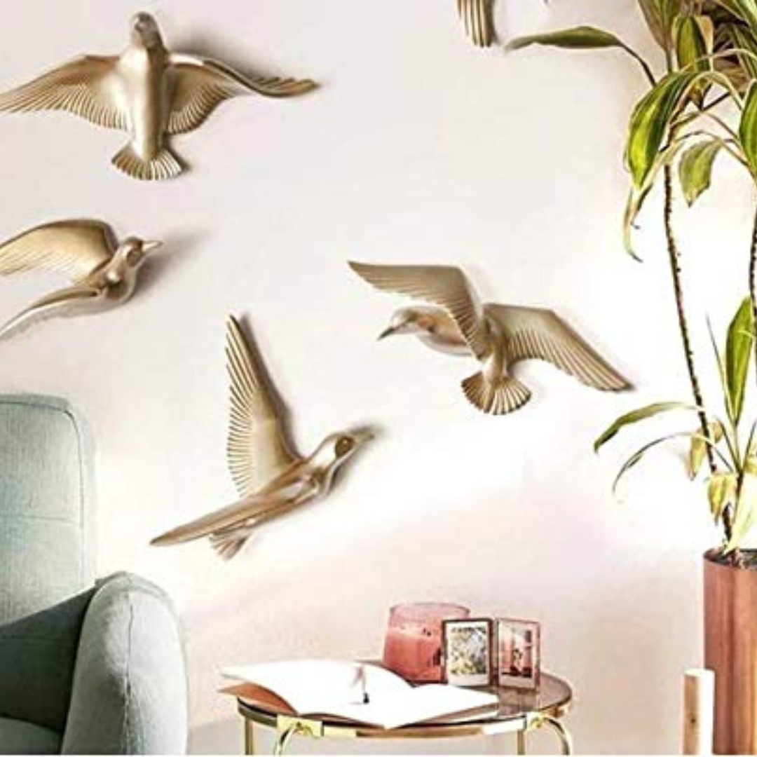 Timeless Metallic Finish Flying Birds Wall Decoration – Contemporary Gold Art Set – Luxurious Accent
