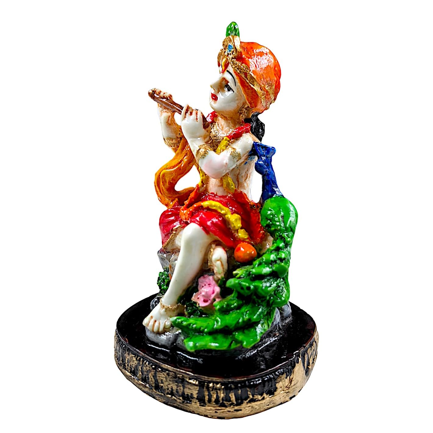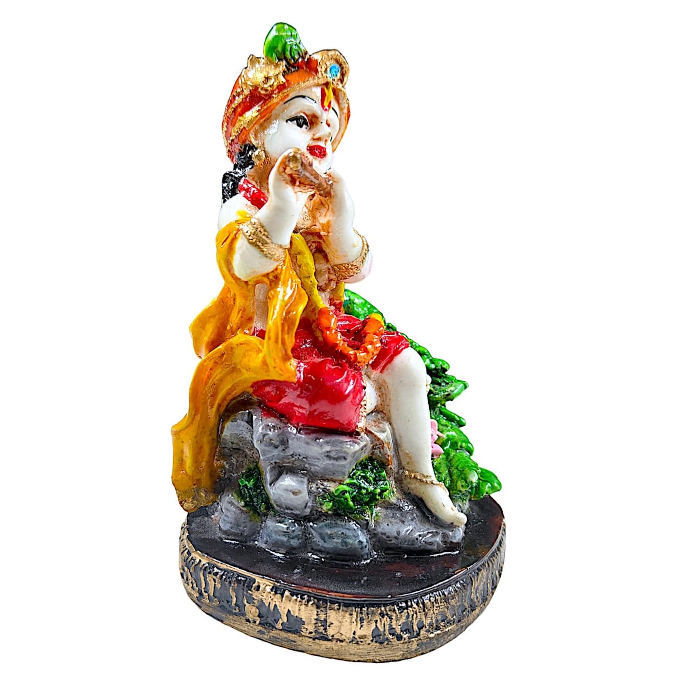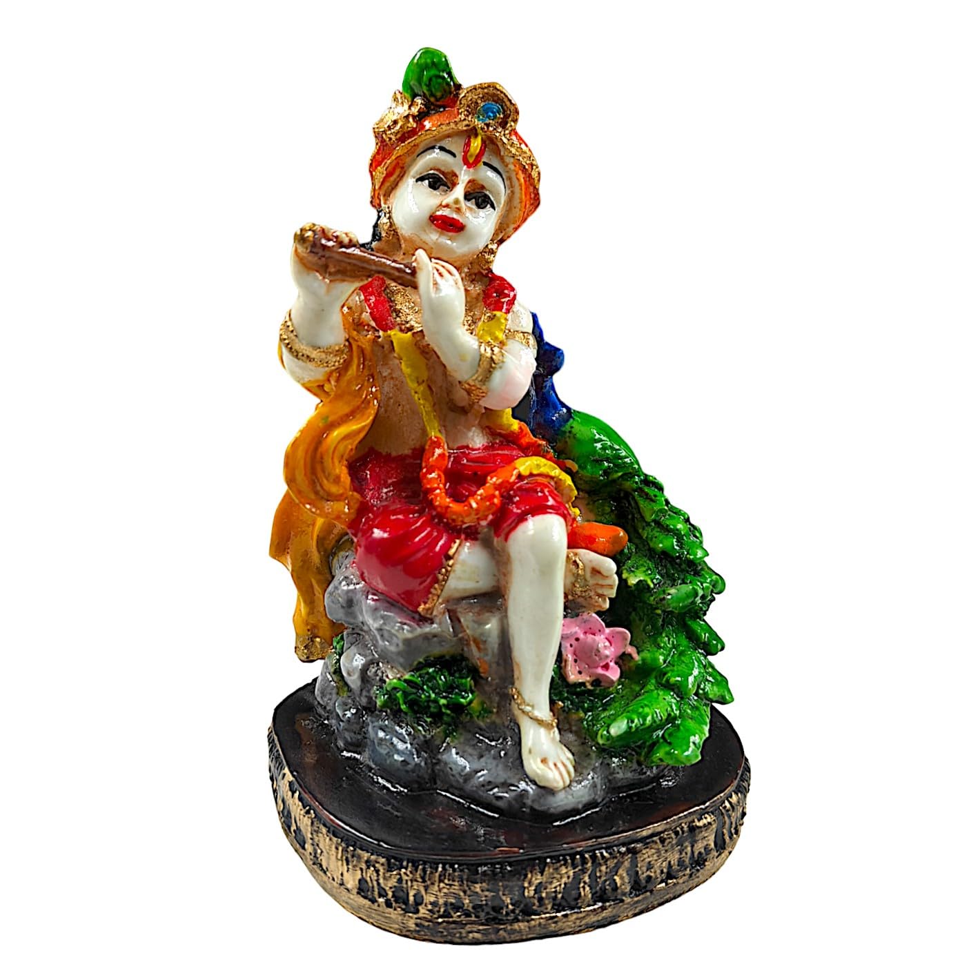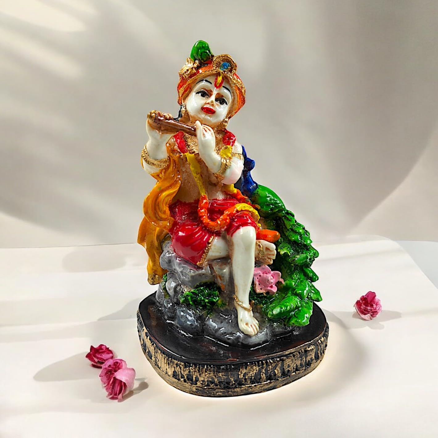 Stylish and divine, this Krishna idol is skillfully crafted from durable resin. A heartwarming gift for family and friends, brightening up any nook, workspace or spiritual corner. Transform your home décor with this stylish piece that also makes a perfect Diwali or housewarming gift. Enchanting Flute- Pose: Captures Lord Krishna in his most beloved form, playing the flute, which symbolizes the melody of creation, divine love, and harmony, filling your space with positive vibrations. Vibrant Hand- Details: Meticulously crafted from high- durable resin-crafted and adorned with rich, hand- colours, showcasing detailed details on Krishna' attire, ornaments, and the distinct peacock feather. Iconic Peacock Feather Adornment: Features a prominent peacock feather, a sacred emblem associated with Lord Krishna, adding to the figurine' authenticity and spiritual significance. Perfect for Spiritual and Home Home Decor: Emblem of Joy and Devotion: Lord Krishna embodies supreme love, joy, and devotion. His presence is believed to foster happiness, remove worries, and attract positive energies into the household. Fortunate Gifting Choice: A profoundly meaningful and cherished gift for Janmashtami, Diwali, housewarmings, weddings, or for anyone who reveres Lord Krishna and appreciates devotional art. Perfect for adding a stylish accent to your living space. A versatile décor piece for those searching for decor kart, homedecor.cart and home decor.kart, perfect for elevating your home style or gifting.