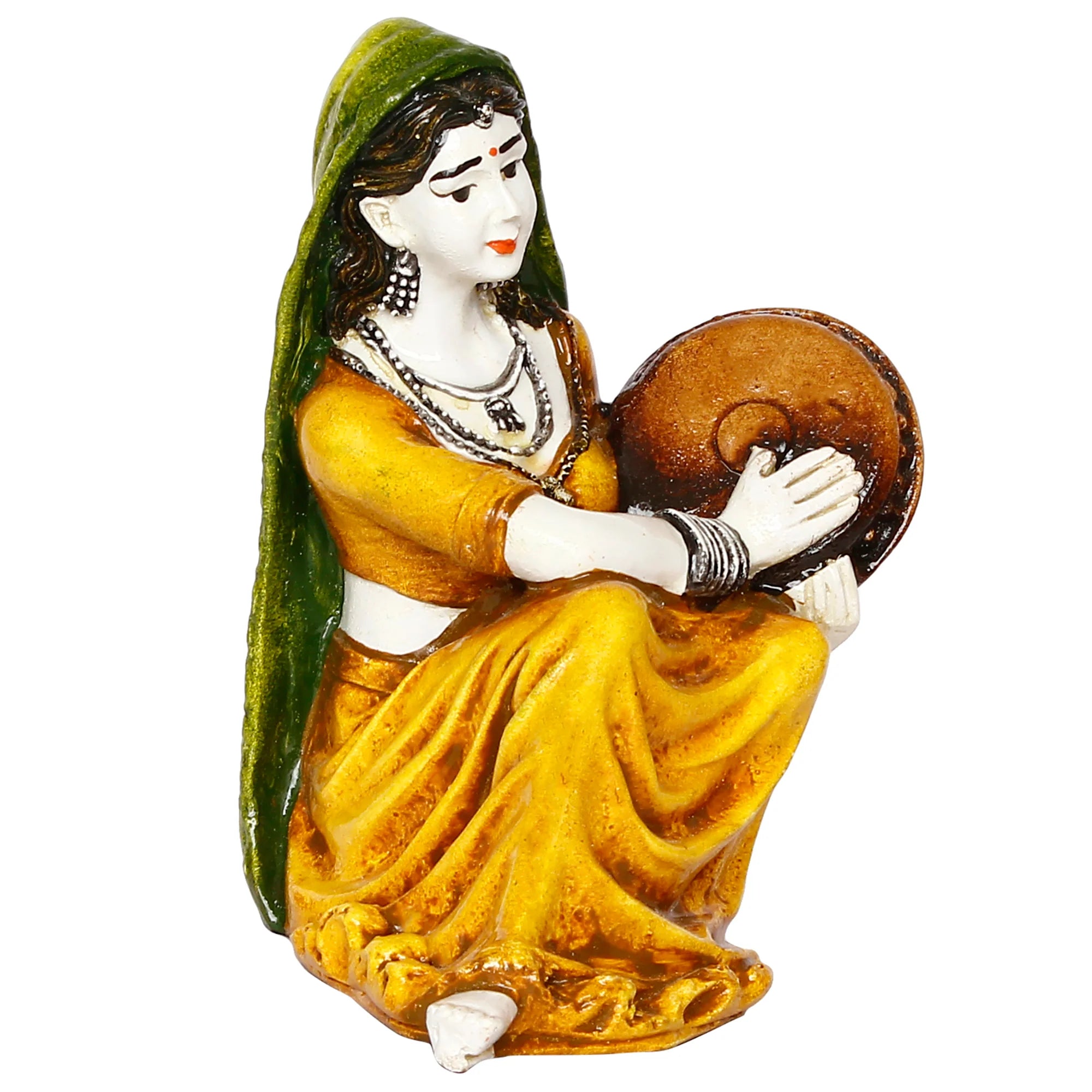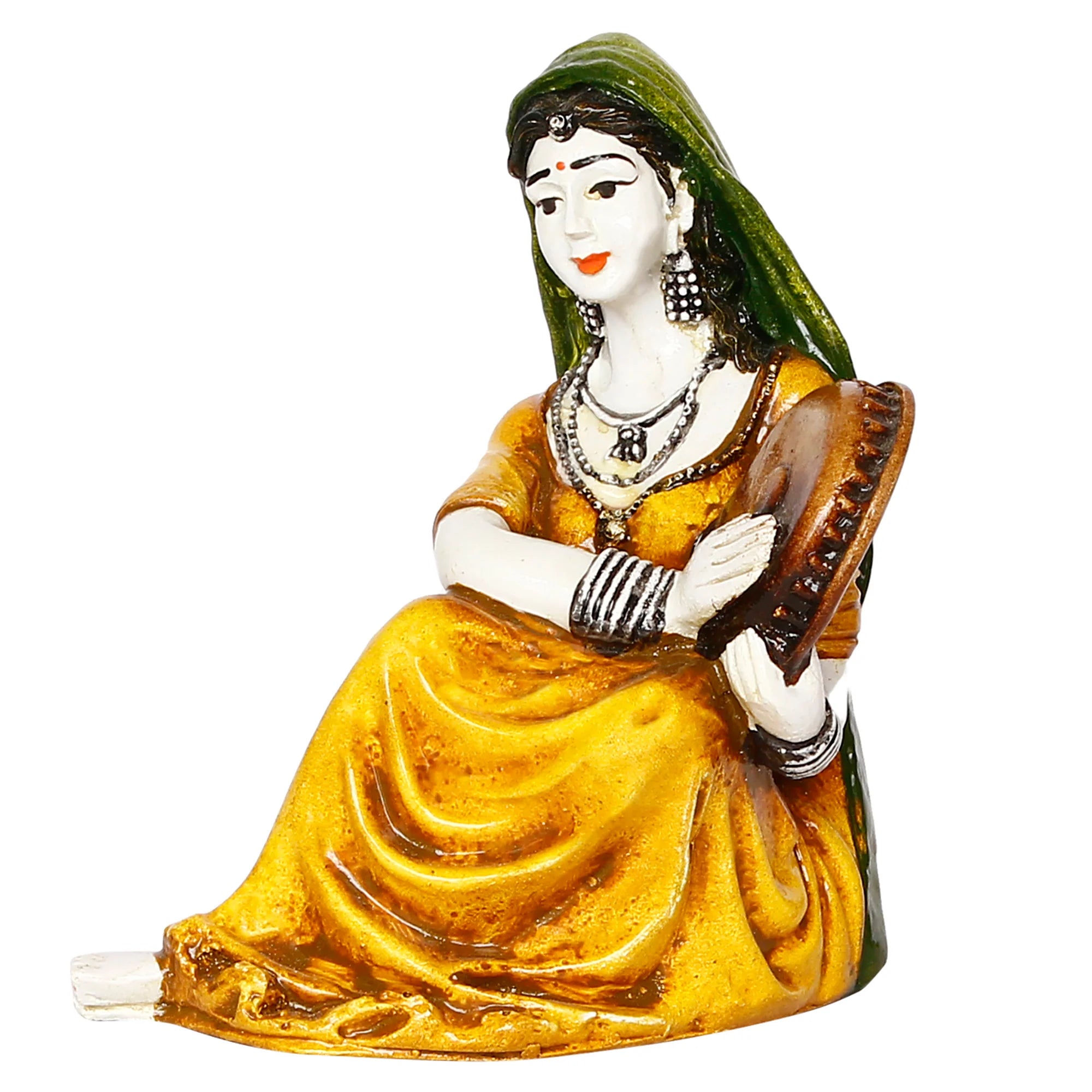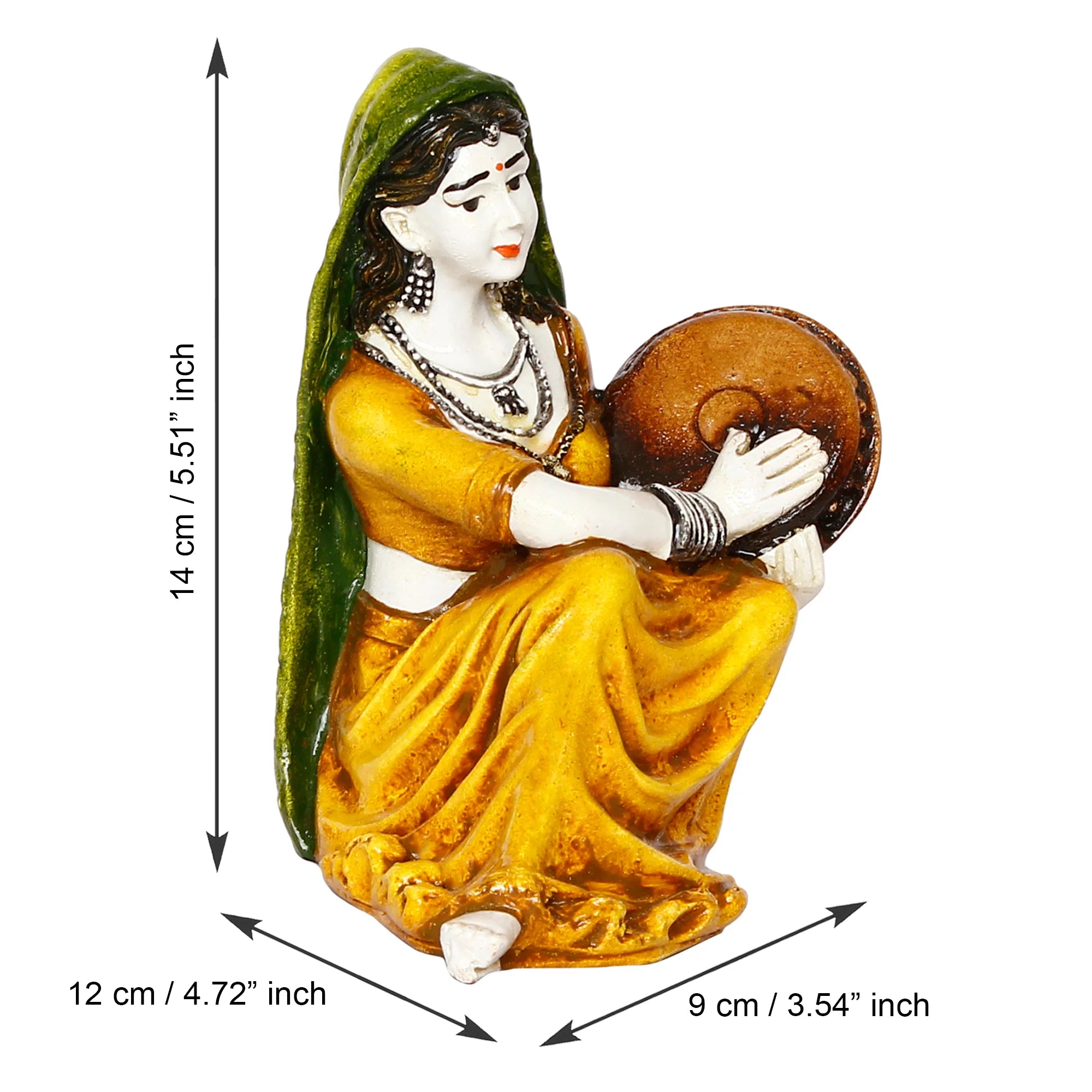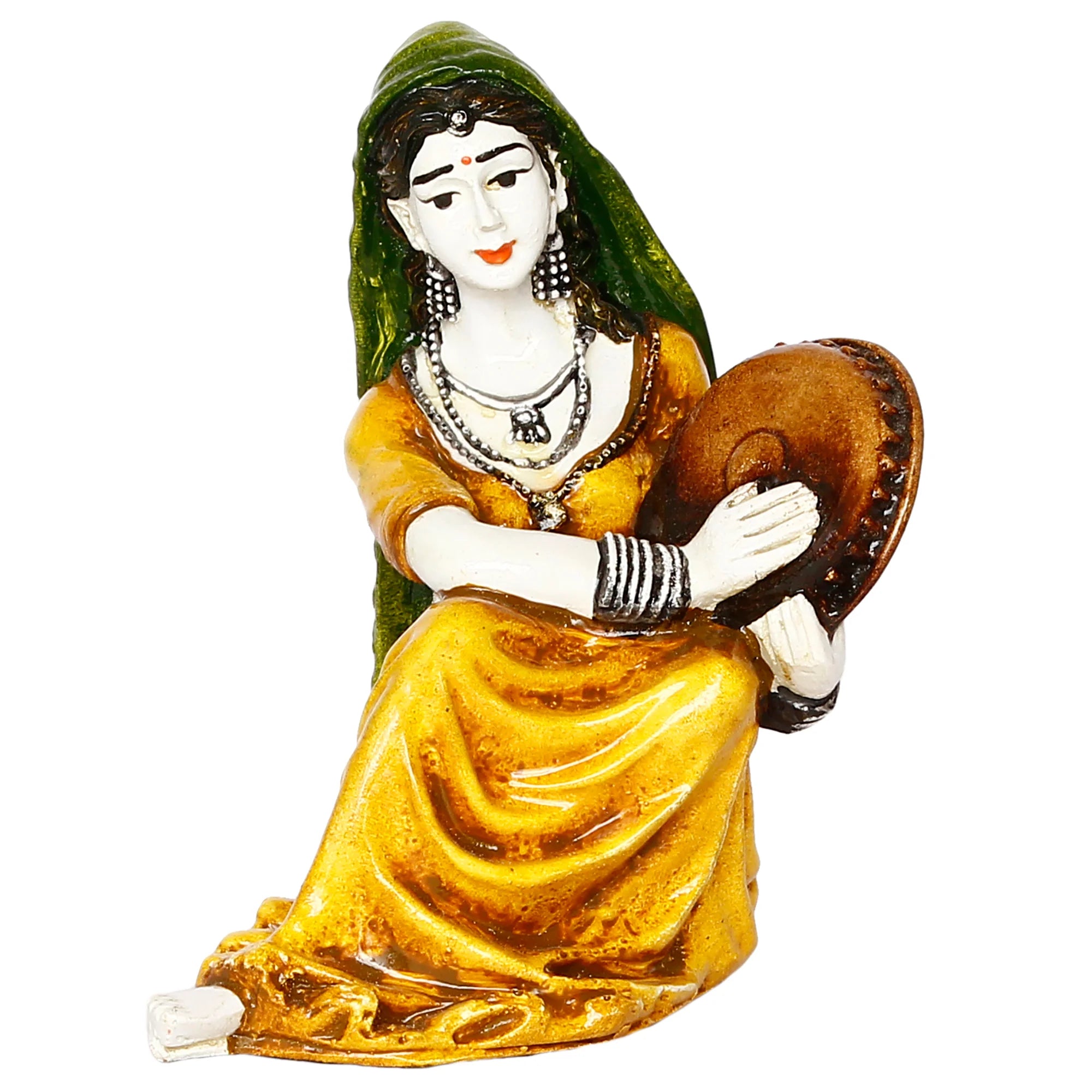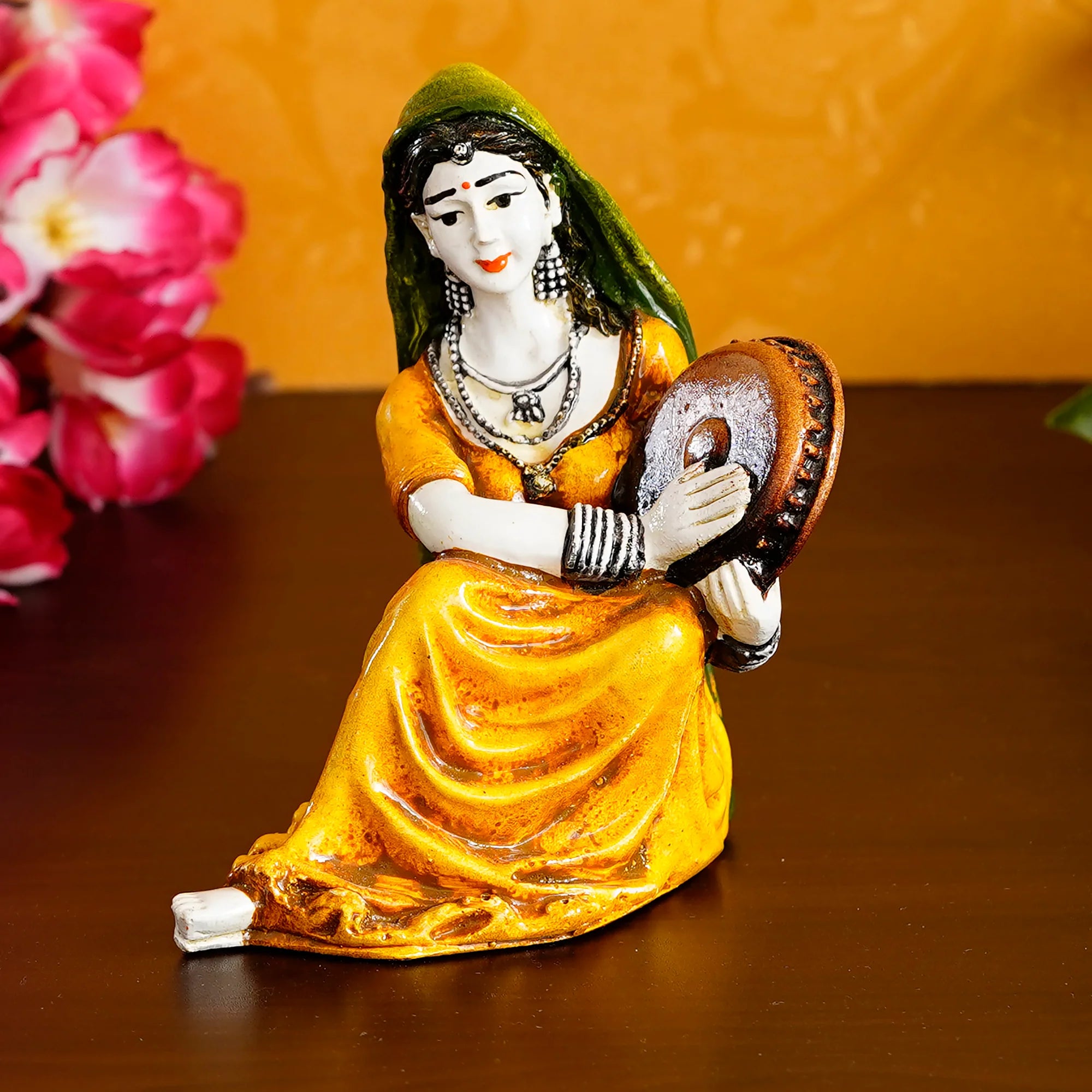 Artistic Rajasthani Lady Playing Daphli Resin Figurine – Artful Decor Piece