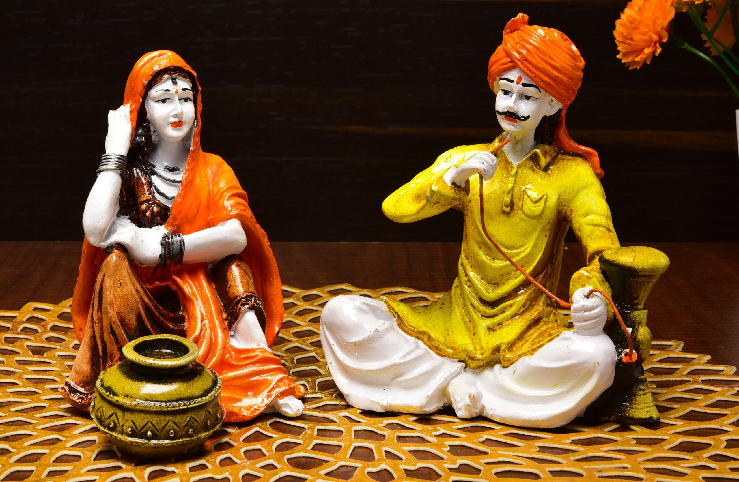 Chic and classic, this Rajasthani figurine is exquisitely crafted from premium resin. A lovely gift for holidays, birthdays or spiritual moments, complementing your living space, study or prayer area. Depicts Classic Rajasthani Life: This charming resin set features a seated woman with a decorative pot and a seated man with a classic hookah, showcasing aspects of rural Indian life. Vibrantly Hand- Each figure is meticulously hand- with bright and lively colors, bringing the cultural scene to life in your home. Authentic Rajasthani Attire: The couple is dressed in characteristic Rajasthani clothing and headwear, adding to the cultural authenticity of the piece. Distinctive Home Home Decor Accent: Thoughtful and Distinctive Gift: A memorable and heartwarming gift for those who appreciate Indian folk art and culture. Resin Craftsmanship: Made from high- resin, ensuring lasting beauty and detailed detailing in the figures and their items. Bring charm and elegance to your décor. Appealing to searches for rajasthani figurines, rajasthani gifts for girls and rajasthani statue showpiece, this Rajasthani figurine makes a charming showpiece or gift that celebrates cultural artistry.