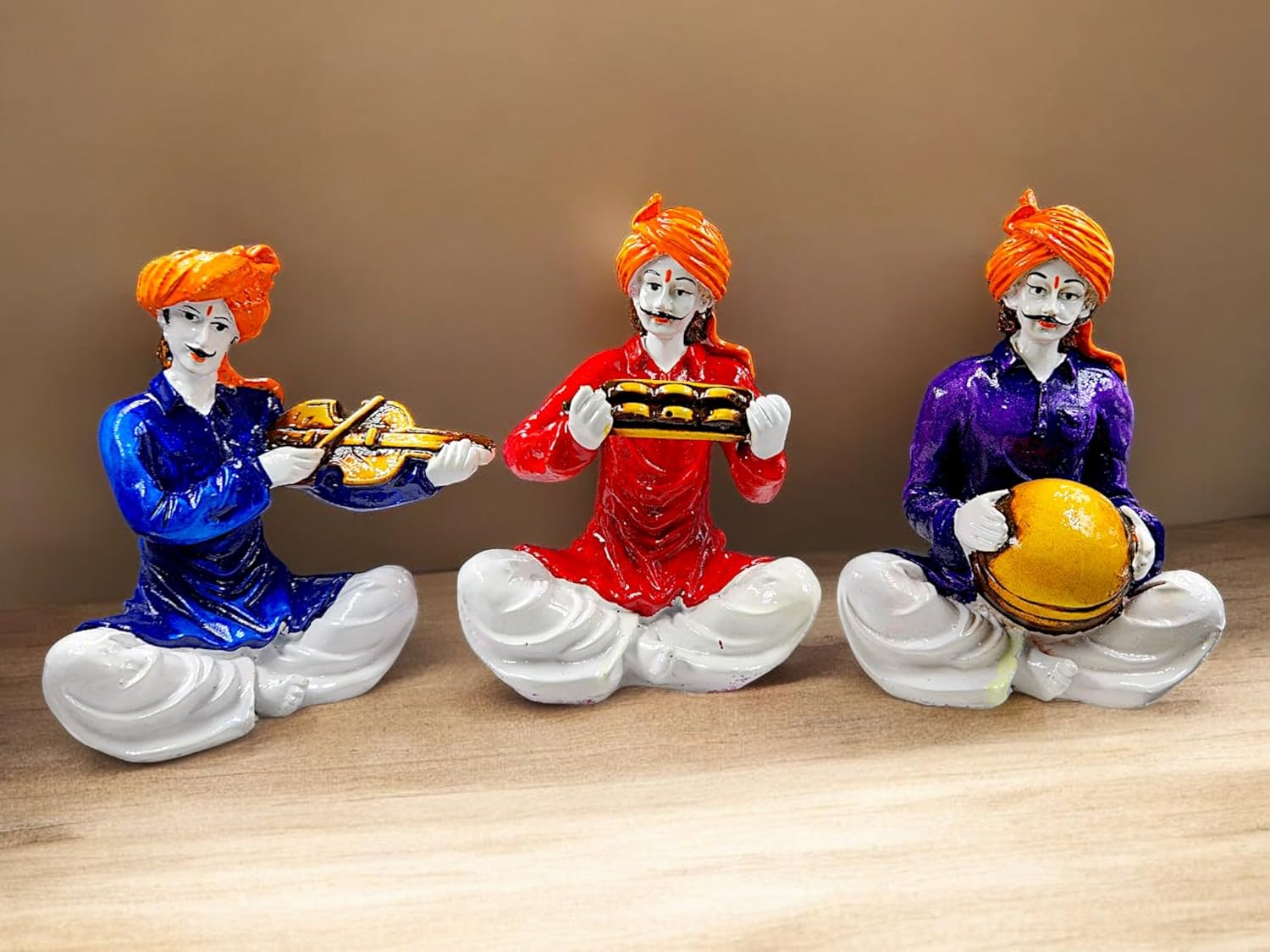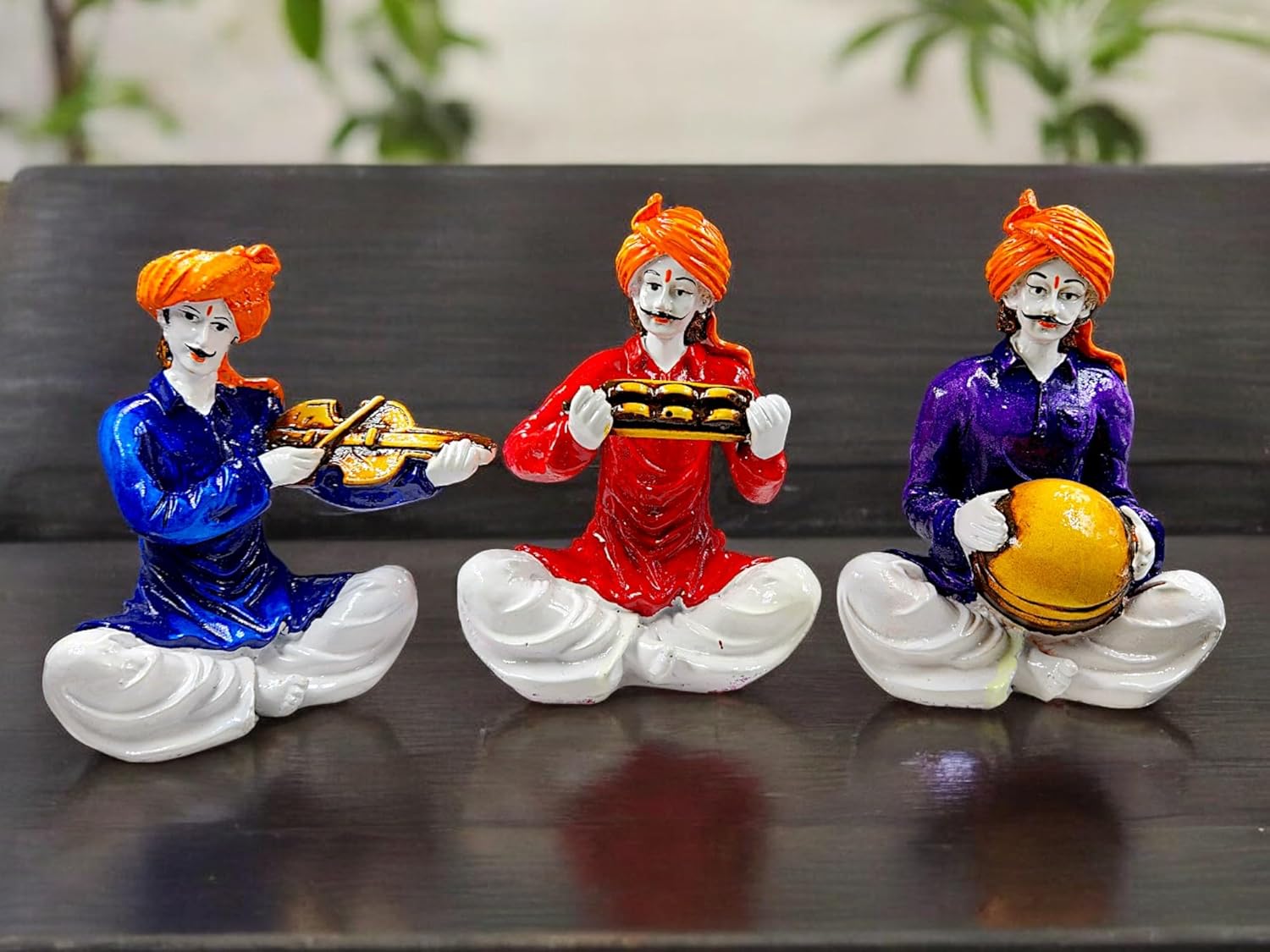 Graceful Colorful Rajasthani Musician Miniature Collection of 3| Classic Indian Folk Design Resin Statues for Home Home Decor & Cultural Gifting – Luxurious Accent