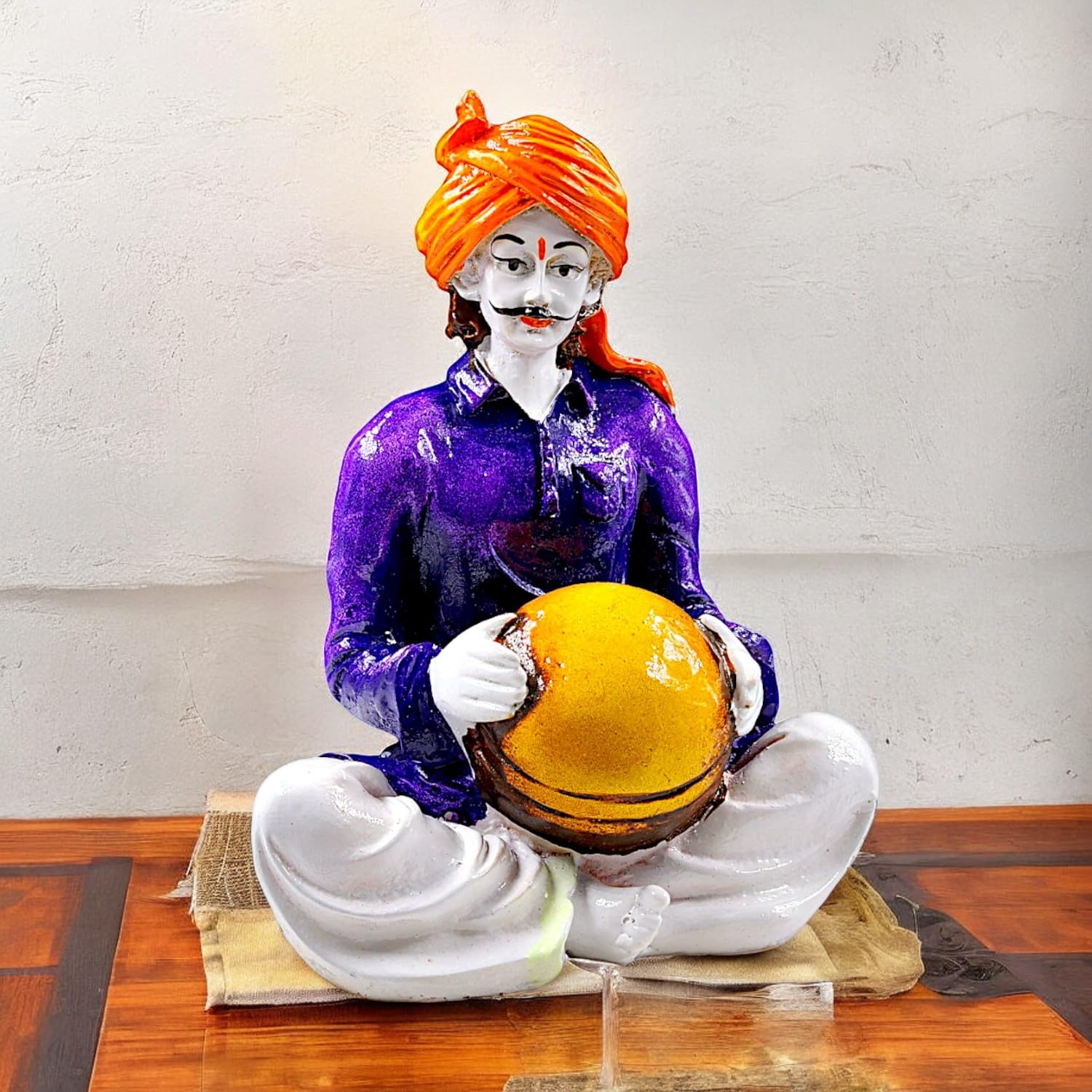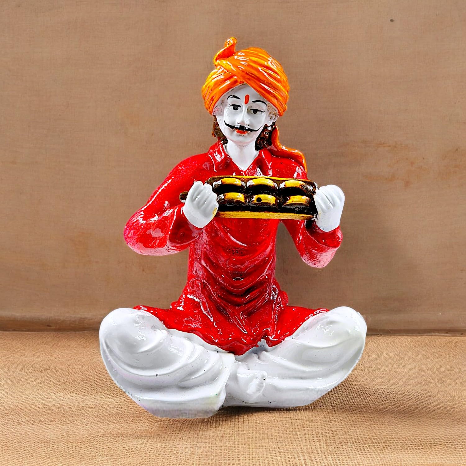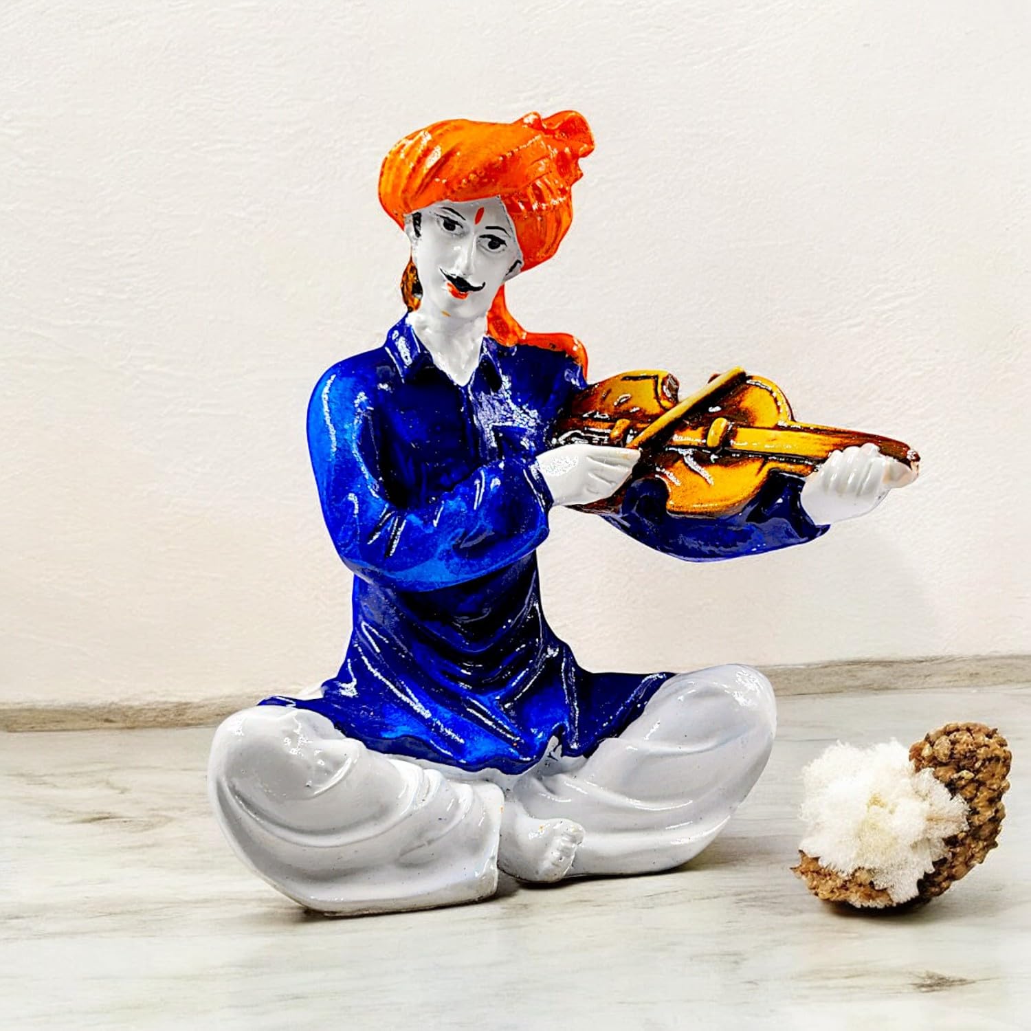 Graceful and heritage-inspired, this Rajasthani figurine is exquisitely crafted from premium resin. An ideal gift for housewarmings and festivals, suiting any living room, meditation area or office. Authentic Cultural Representation: This set showcases the iconic artistry and musical traditions of Rajasthan, adding a touch of authentic Indian heritage to your home decor. Vibrant and Crafted By Hand Look: Made from durable resin-crafted, each figurine boasts a rich, hand- finish with detailed details on their classic attire, turbans, and instruments, bringing their one-of-a-kind personalities to life. Set of Three Harmonious Figures: The collection includes three distinct musicians (one with a string instrument, one with percussion, and one with a tray of offerings creating a dynamic) and visually appealing ensemble for any display. Home and Office Home Decor: They effortlessly blend with both ethnic and eclectic interior designs. Emblem of Celebration and Joy: These musicians evoke feelings of celebration, festivity, and cultural vibrancy, infusing your environment with positive and lively energy. Thoughtful Cultural Gifting: An exceptional and memorable gift for housewarmings, Diwali, cultural events, weddings, or for anyone who appreciates Indian art, music, and traditions. Enhances the ambiance of living rooms, bedrooms, and offices. Appealing to searches for rajasthani figurines, rajasthani gifts for girls and rajasthani statue showpiece, this Rajasthani figurine makes a charming showpiece or gift that celebrates cultural artistry.