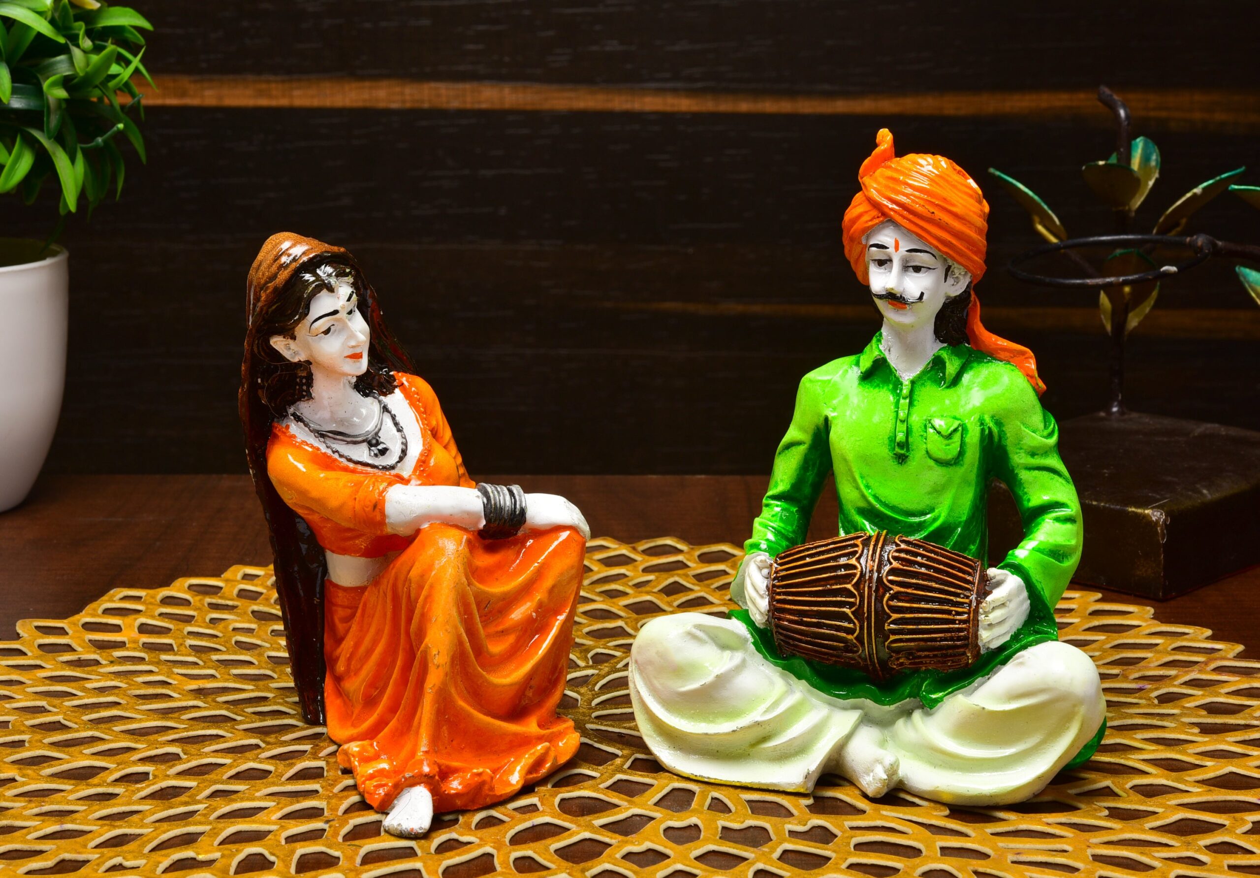 Luxurious Rajasthani Musician Couple Classic Indian Home Decor Collection – Home Decor Accent