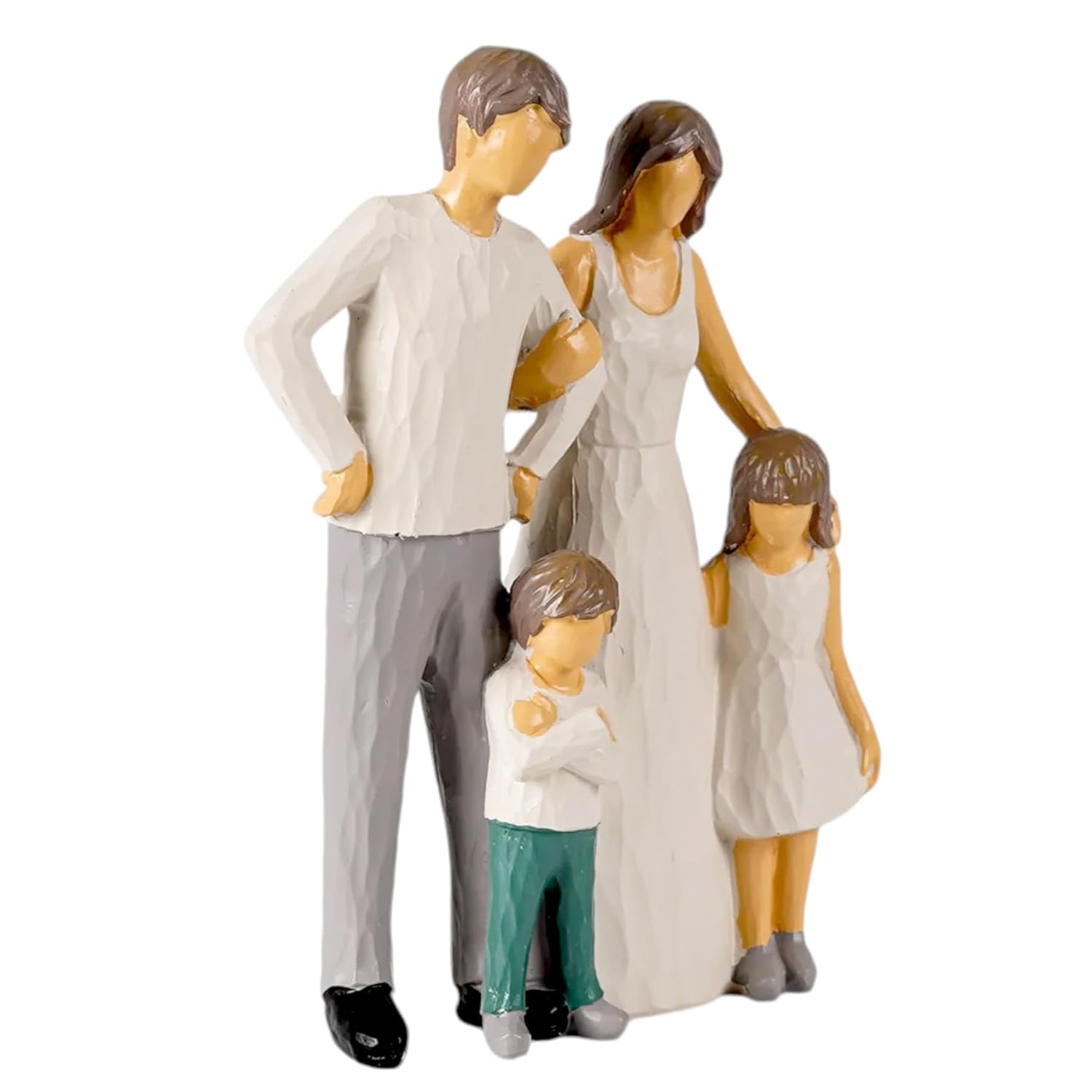Modern, this Rajasthani figurine is expertly crafted from resin-crafted. A meaningful gift for diwali or special occasions, enhancing your office desk, bookshelf or meditation area. Emblem of Unity: Exquisitely portrays a complete family, symbolizing love, togetherness, and cherished moments. Artistic Design: Features a contemporary, minimalist design with textured clothing details, allowing it to blend seamlessly with various interior styles. Warm Home Accent: Adds a touch of warmth, sentiment, and personality to living rooms, entryways, shelves, or mantels. Meaningful Gift: An ideal present for housewarmings, anniversaries, Mother' Day, Father' Day, or for new parents, celebrating the joy of family. Durable Material: Crafted from high- resin, ensuring longevity and a lasting reminder of family love. Versatile Display: Complements a wide range of decor, from contemporary to rustic, and can be easily incorporated into existing arrangements. A wonderful gift for loved ones and collectors. Appealing to searches for rajasthani figurines, rajasthani gifts for girls and rajasthani statue showpiece, this Rajasthani figurine makes a charming showpiece or gift that celebrates cultural artistry.