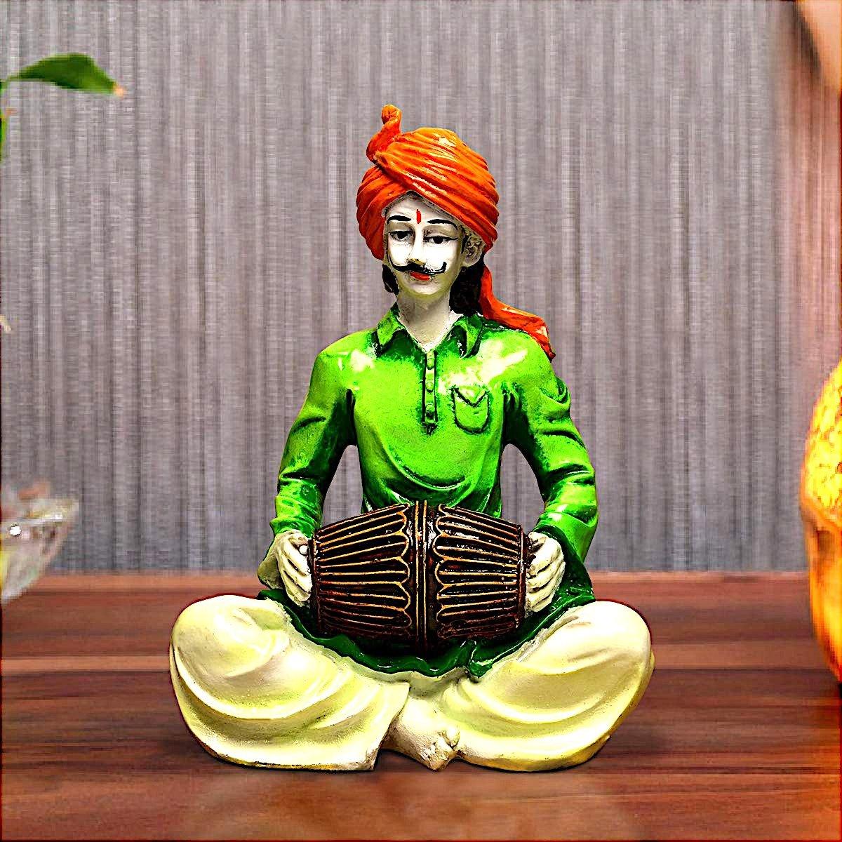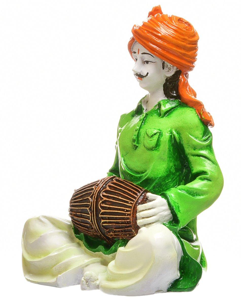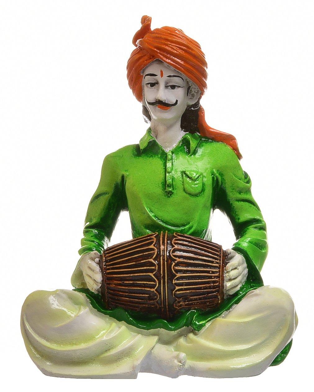 Stylish Artisan Crafted Resin Green Eco Friendly Rajasthani Musician Figurine Figure – Home Decor Accent