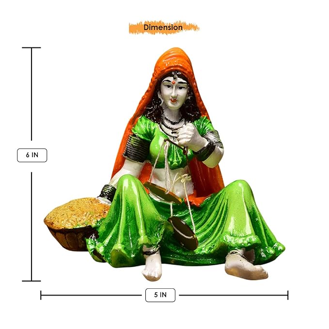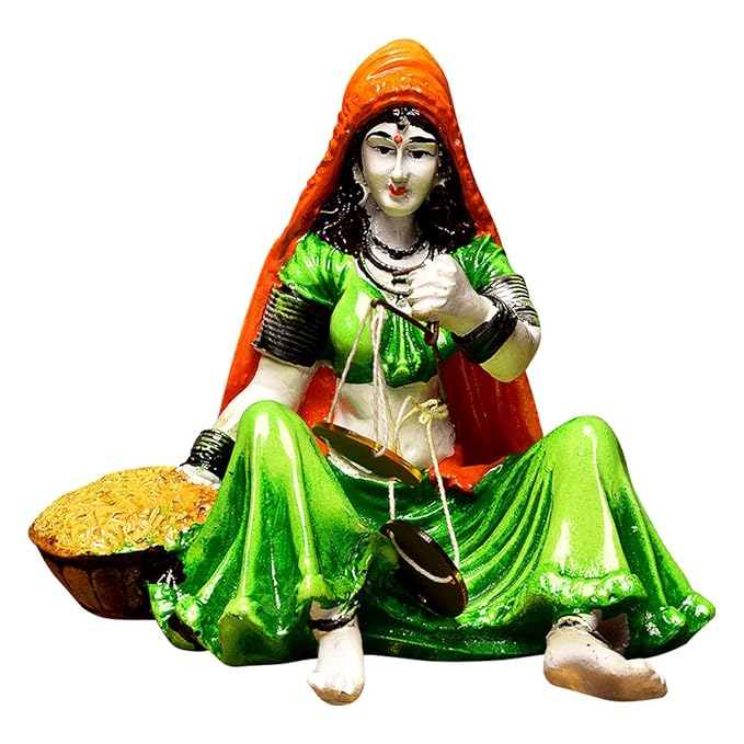 Fashionable and expressive, this Rajasthani figurine is exquisitely crafted from premium resin. An ideal gift for housewarmings and festivals, suiting any living room, meditation area or office. Crafted By Hand Rajasthani Lady with Taraju: This charming resin-crafted figurine depicts a seated Rajasthani woman holding a classic weighing scale (Taraju), showcasing a glimpse of rural Indian life. Vibrantly Hand- The figurine is meticulously hand- with bright and authentic colors, bringing the cultural scene to life in your home. Authentic Rajasthani Attire: The woman is dressed in characteristic Rajasthani clothing and jewelry, adding to the cultural authenticity of the piece. One-Of-A-Kind Cultural Home Decoration: Perfect for adding a touch of cultural realism and rustic charm to your living space. Thoughtful Indian Gift: A distinctive and heart warming gift for those who appreciate Indian traditions and crafted by hand art. Resin-Crafted Craftsmanship: Made from high- resin-crafted, ensuring lasting beauty and detailed detailing in the figure and the Taraju. Represents Classic Livelihoods: This figurine offers a glimpse into classic occupations and daily life in Rajasthan. Charming Artistic Collectible: A delightful addition to any collection of Indian art, cultural figurines, or folk art. An elegant addition to your home or workspace. Appealing to searches for rajasthani figurines, rajasthani gifts for girls and rajasthani statue showpiece, this Rajasthani figurine makes a charming showpiece or gift that celebrates cultural artistry.