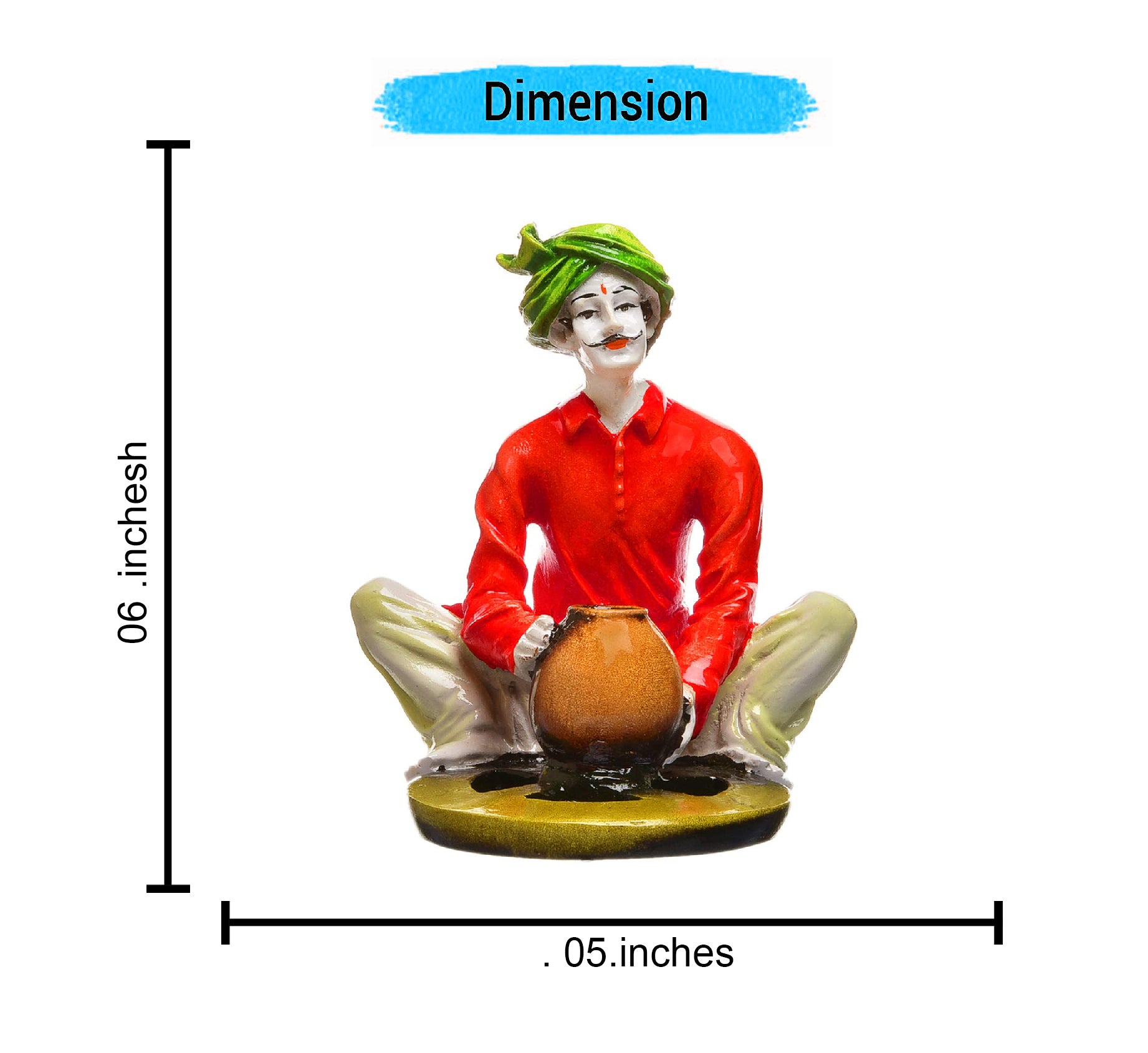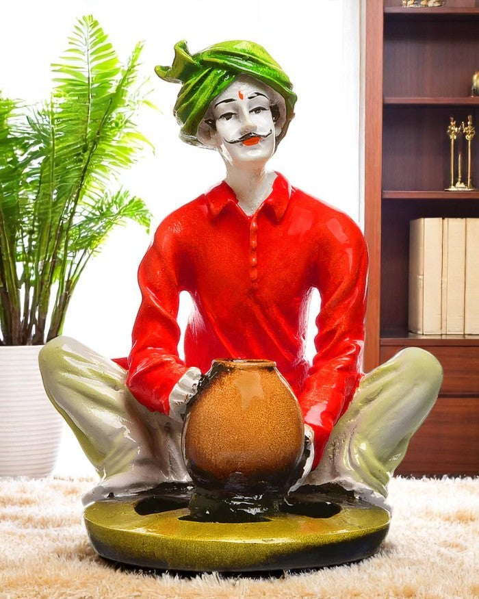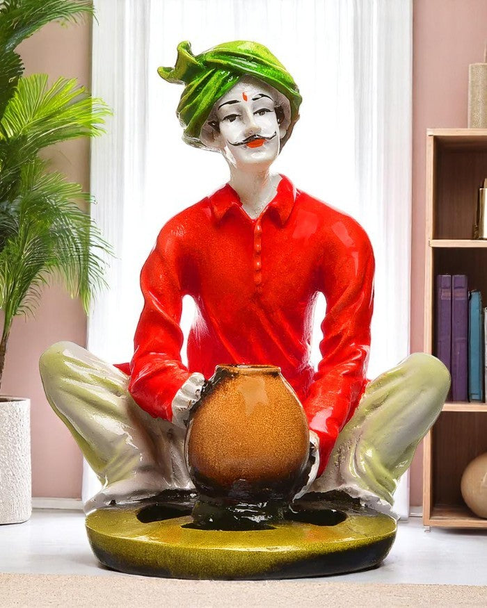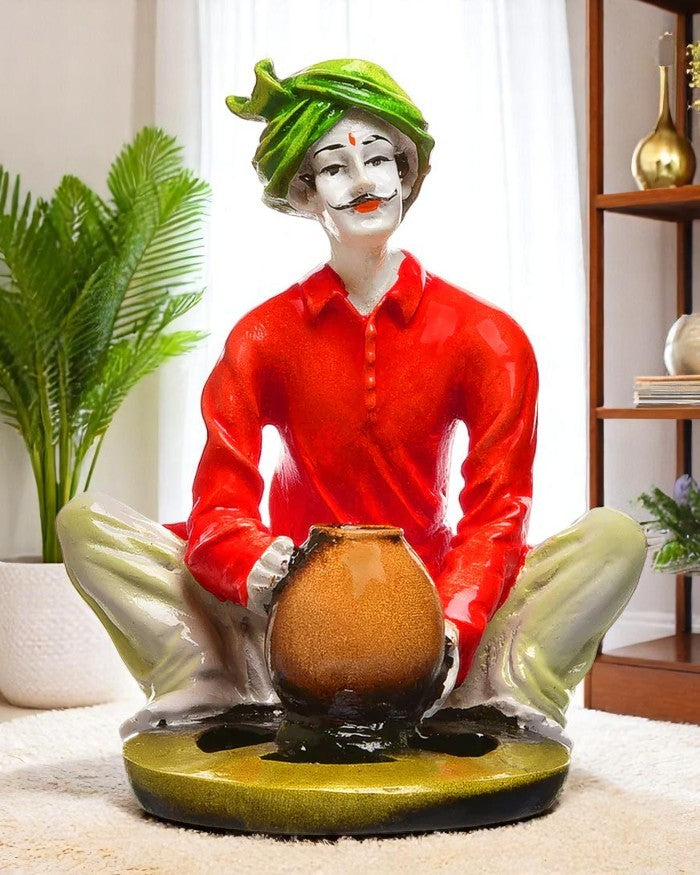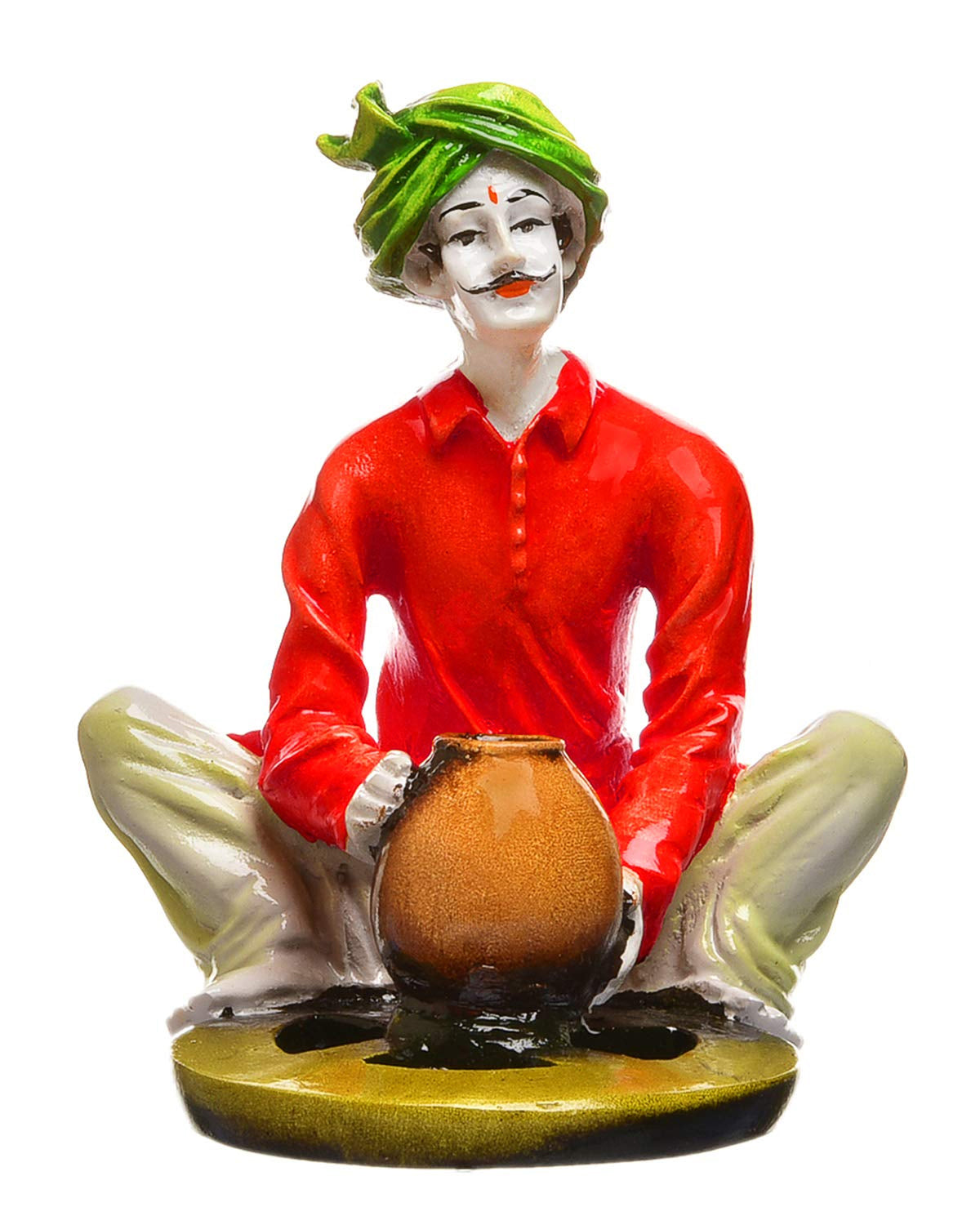 Chic and artistic, this Rajasthani figurine is meticulously crafted from premium materials. A wonderful housewarming or festival gift, decorating your dining room, entryway or home temple. Rajasthani Potter Figurine: Celebrates the ancient art of Indian pottery. Classic Craftsmanship: Depicts an artisan at a pottery wheel. Vibrant Attire: Features a striking green turban and classic clothing. Cultural Home Decoration: Hand- Detail: Showcases detailed artistry and authenticity. One-Of-A-Kind Artisan Gift: Perfect for lovers of crafted by hand art, culture, and ethnic decoration. An elegant addition to your home or workspace. Appealing to searches for rajasthani figurines, rajasthani gifts for girls and rajasthani statue showpiece, this Rajasthani figurine makes a charming showpiece or gift that celebrates cultural artistry.