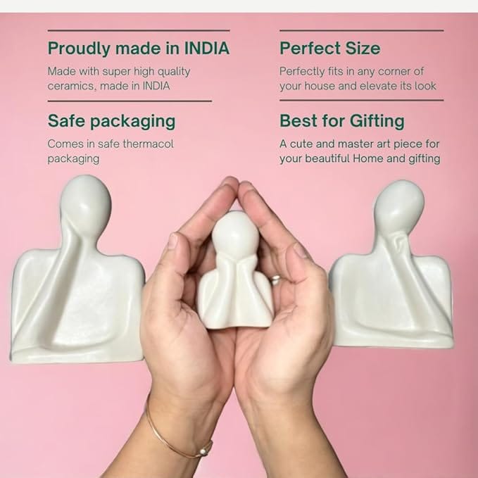 Classic and expressive, this Rajasthani figurine is exquisitely crafted from premium resin. An ideal gift for housewarmings and festivals, suiting any living room, meditation area or office. Contemporary Modern Family Design: This set features three minimalist white figurines representing a family, with smooth, modern forms. White Finish: The clean white colour offers a contemporary and serene aesthetic that complements various decor styles. Crafted from Durable Resin: Made from high- resin, ensuring lasting beauty and a smooth, contemporary form. Versatile Home Decor Accent: Perfect for displaying on shelves, mantels, desks, or tables in living rooms, bedrooms, or nurseries. Emblem of Family Love: These modern figures represent the bond, unity, and love within a family. Thoughtful Gift Idea: A meaningful and graceful gift for new families, housewarmings, or any occasion celebrating family. Minimalist and Contemporary Style: The simple yet impactful design fits well with minimalist and contemporary interiors. Adds a Touch of Subtle Artistry: Introduce a touch of contemporary modern art with this understated family figure set. Bring charm and elegance to your décor. Appealing to searches for rajasthani figurines, rajasthani gifts for girls and rajasthani statue showpiece, this Rajasthani figurine makes a charming showpiece or gift that celebrates cultural artistry.
