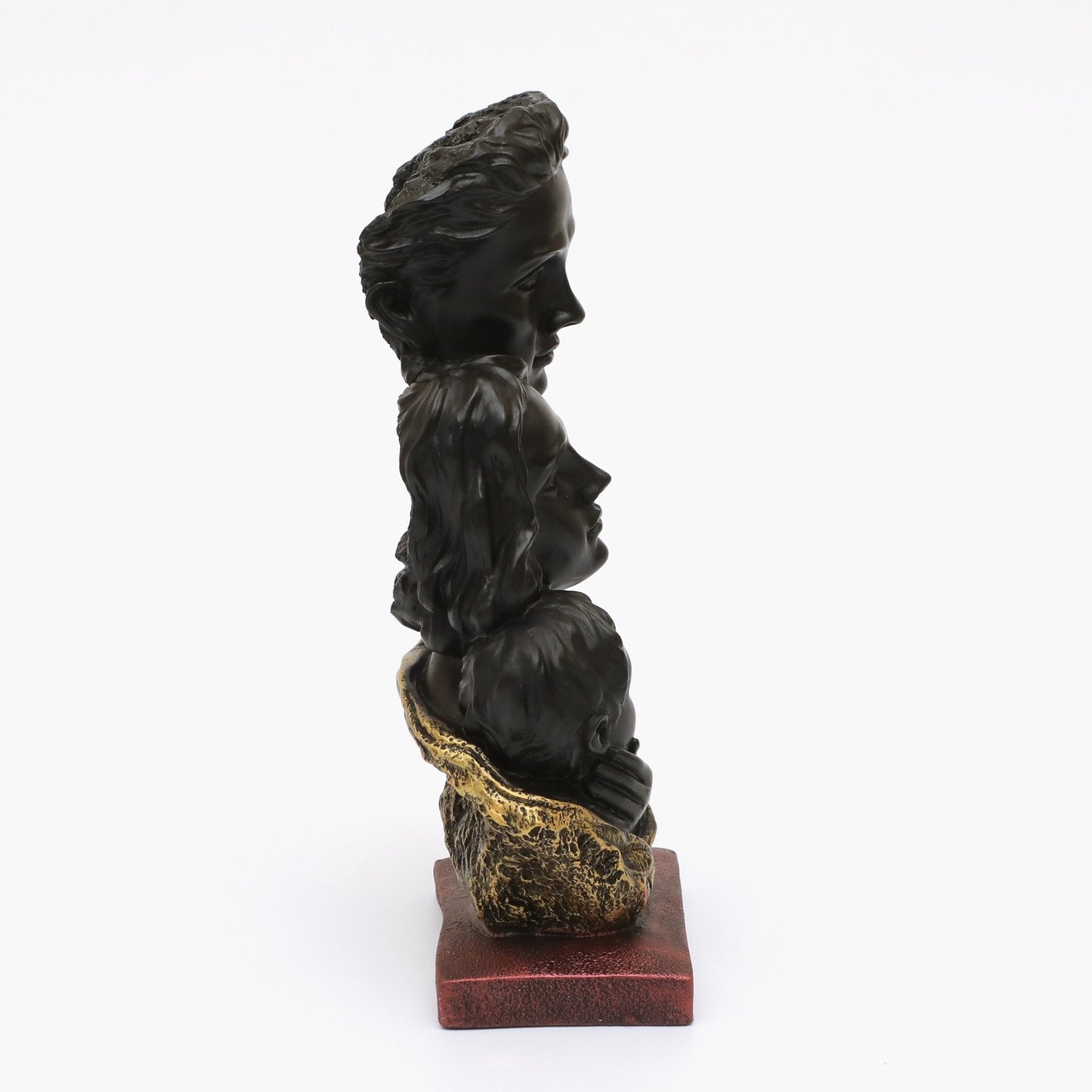 Timeless Family Love Figure: Graceful Black & Gold Mother Father Child Figurine – Artful Decor Piece