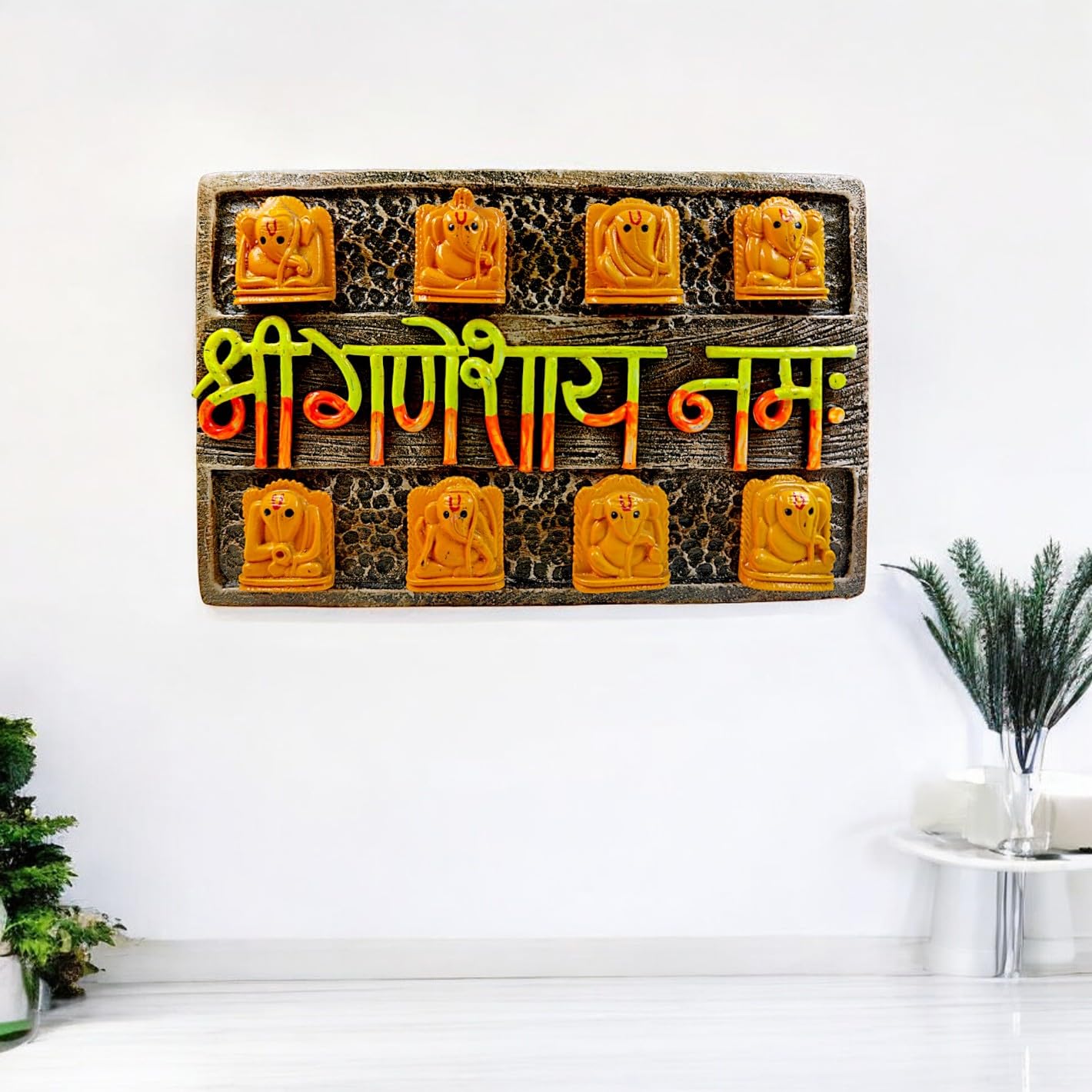 Chic Shri Ganeshay Namah Wall Hanging | Resin 10 Ganesha Figure Border | Lucky Home Home Decor | Puja Room & Main Door Decoration | Good Luck & Blessings – Stylish Accent