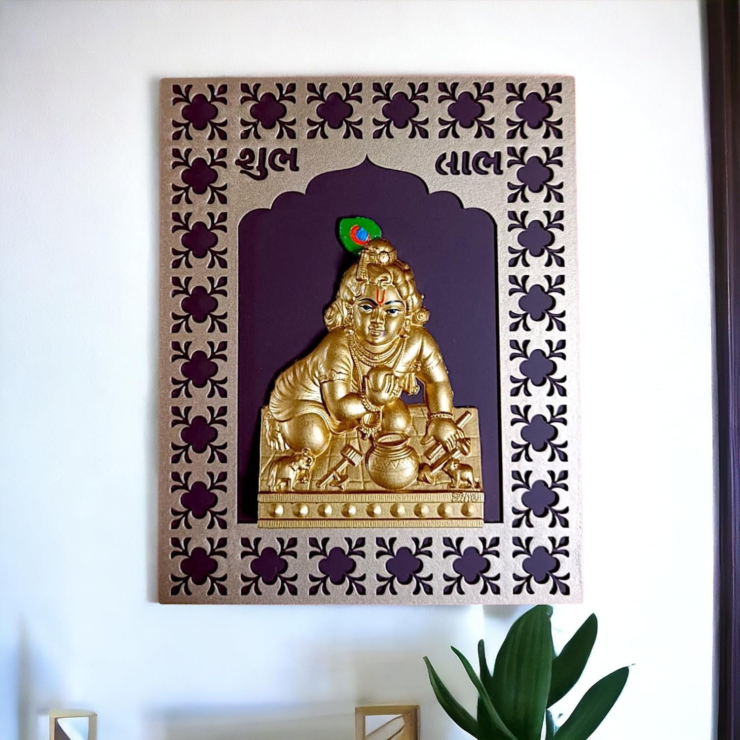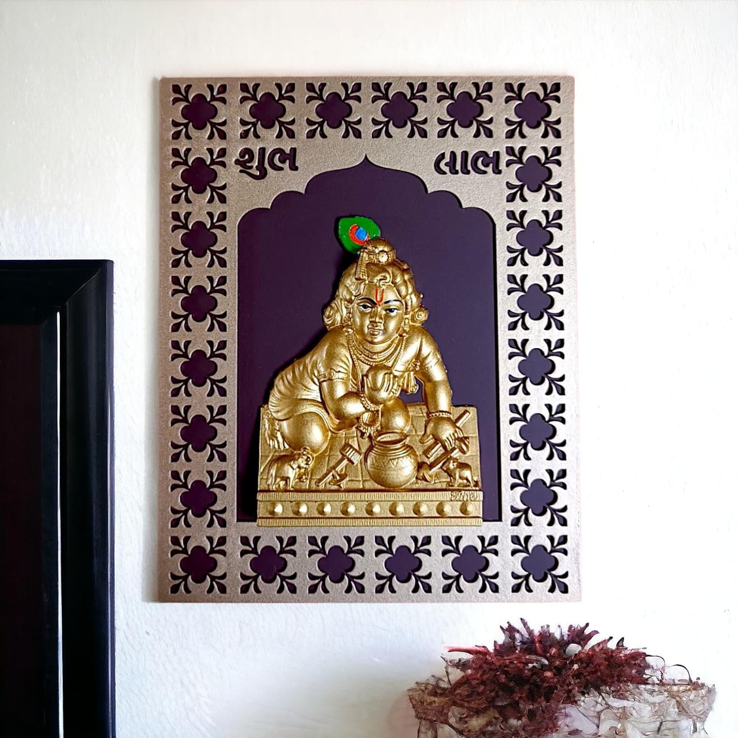 Graceful Premium Golden Bala Krishna Wall Hanging Decor – Unique Decor Piece