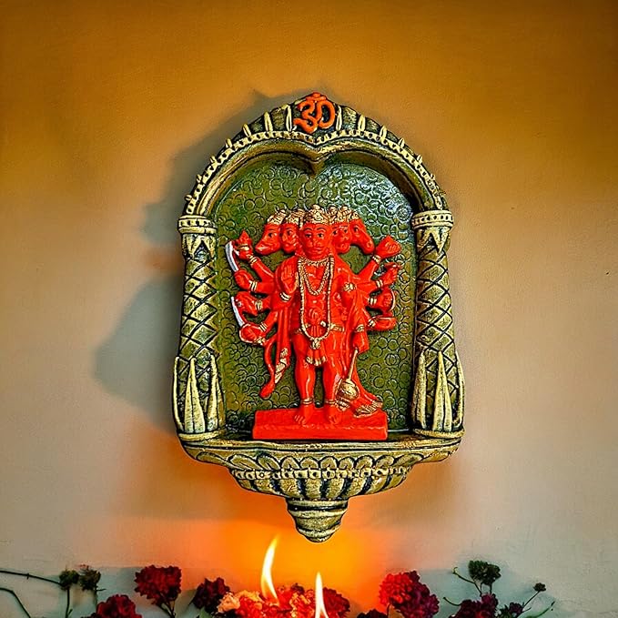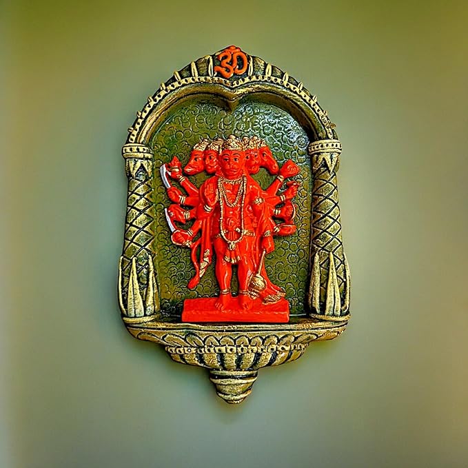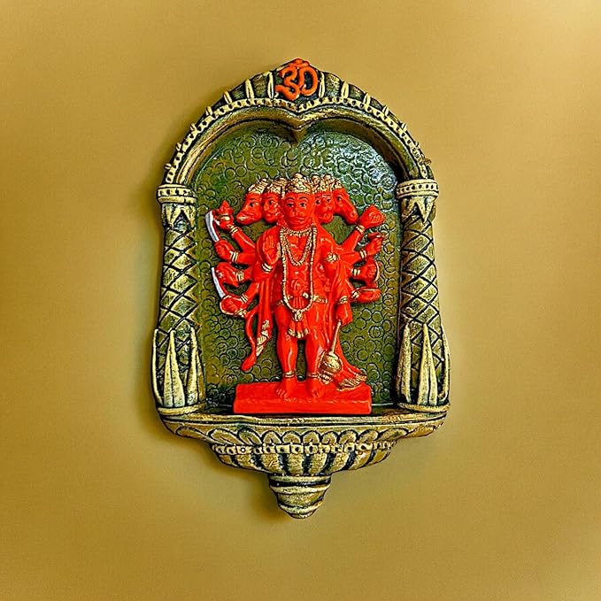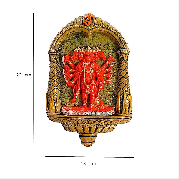 Modern and opulent, this wall décor piece is exquisitely crafted from premium resin. An ideal gift for housewarmings and festivals, suiting any living room, meditation area or office. Celebrate devotion with this Hanuman idol – a striking home décor piece and a meaningful gift for festivals like Diwali and Navaratri. Majestic Panchmukhi Hanuman Design: Features five- Hanuman seated on a vibrant backdrop, radiating strength and divine energy. Durable Resin Wall Mount: Made from high- resin, lightweight and sturdy, Striking Red Finish with Detailed Details: The vivid red tone adds a powerful spiritual vibe to your pooja room or living space. Perfect for Sacred Corners: Wall- design saves space while enhancing the aesthetic of your prayer area or mindfulness zone. Divine Gifting Choice: An fortunate gift for housewarmings, Diwali, Hanuman Jayanti, or spiritual milestones. Infuses Positivity and Protection: Symbolizes power, devotion, and protectionbelieved to remove negativity and attract blessings. A wonderful gift for loved ones and collectors. An excellent choice for hanuman home decor, hanuman gift ideas and panchmukhi hanuman for entrance, this Hanuman idol blends sacred symbolism with striking design—