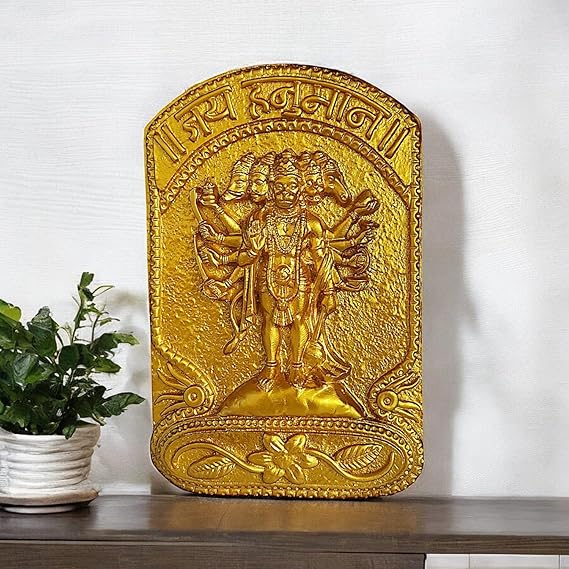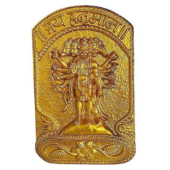 High-quality and refined, this wall décor piece is expertly crafted from resin-crafted. A meaningful gift for diwali or special occasions, enhancing your office desk, bookshelf or meditation area. Celebrate devotion with this Hanuman idol – a striking home décor piece and a meaningful gift for festivals like Diwali and Navaratri. Majestic Panchmukhi Hanuman Design: Features Hanuman in his five- divine form, each symbolizing spiritual wisdom and strength. Shiny Gold Finish for Royal Look: The lustrous golden resin-crafted gives a metallic finish while being lightweight and durable. Perfect for Pooja Room or Entryway: Instantly brings a spiritual and cultural vibe to your home, temple, or office entrance. Fortunate Gift for Every Occasion: Great for Diwali, Hanuman Jayanti, housewarming, or as a spiritual gift of blessings. Ready- Wall Plaque: Lightweight resin-crafted structure comes with a flat back for easy wall placement. Emblem of Courage and Protection: A powerful vastu element to guard your home and attract positive energy. Crafted By Hand Detailing in High-Quality Resin-Crafted: Each inch is crafted with care, bringing life to this sacred wall art. Enhances the ambiance of living rooms, bedrooms, and offices. An excellent choice for hanuman home decor, hanuman gift ideas and panchmukhi hanuman for entrance, this Hanuman idol blends sacred symbolism with striking design—