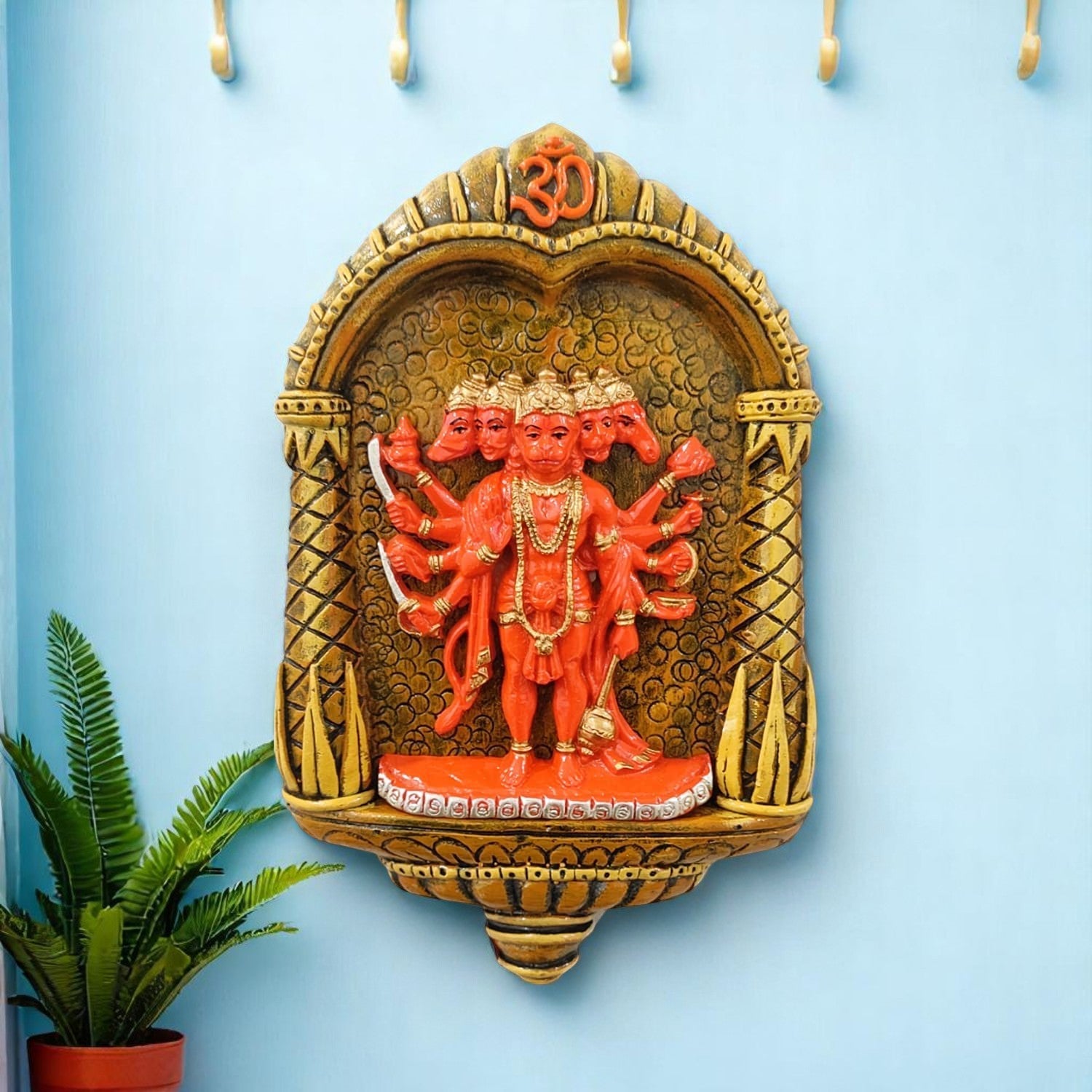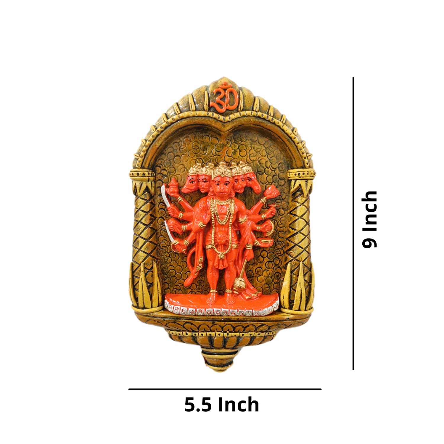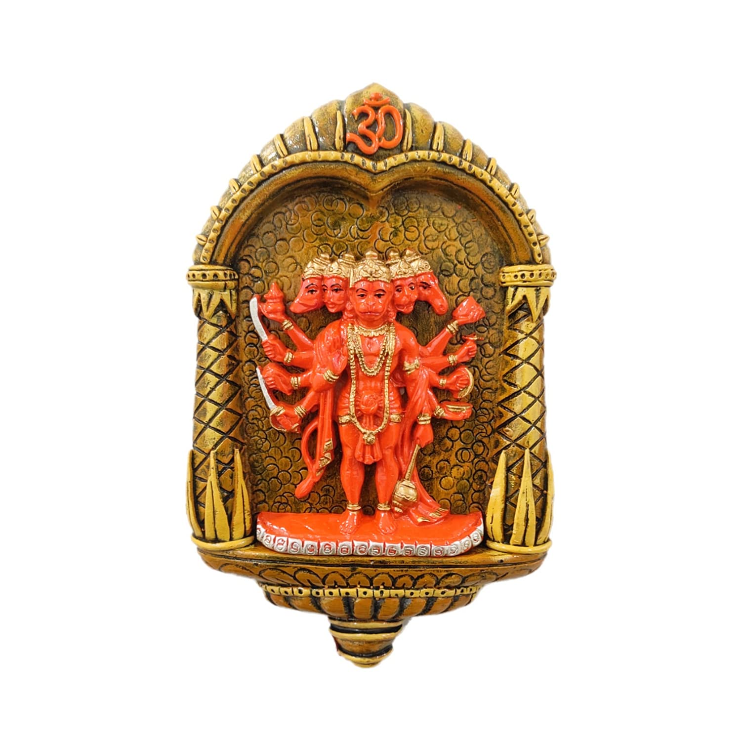Stylish Panchmukhi Hanuman Ji Wall Hanging with Om Arch | Spiritual Resin-Crafted Statue – Luxurious Accent
