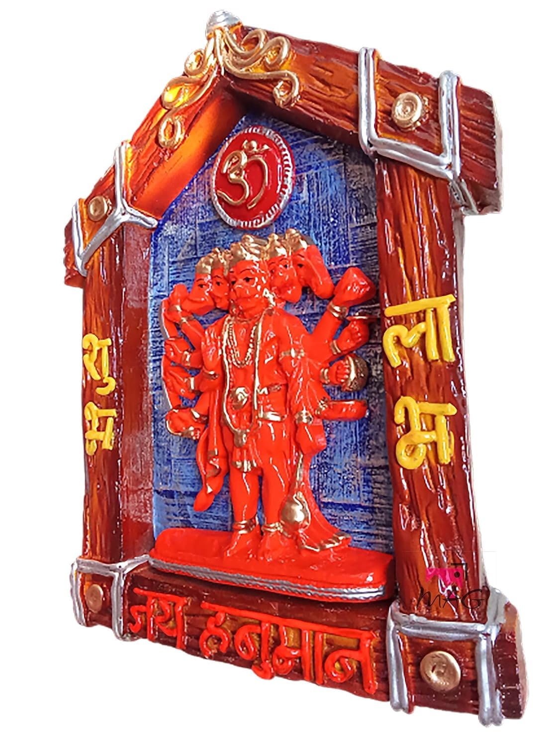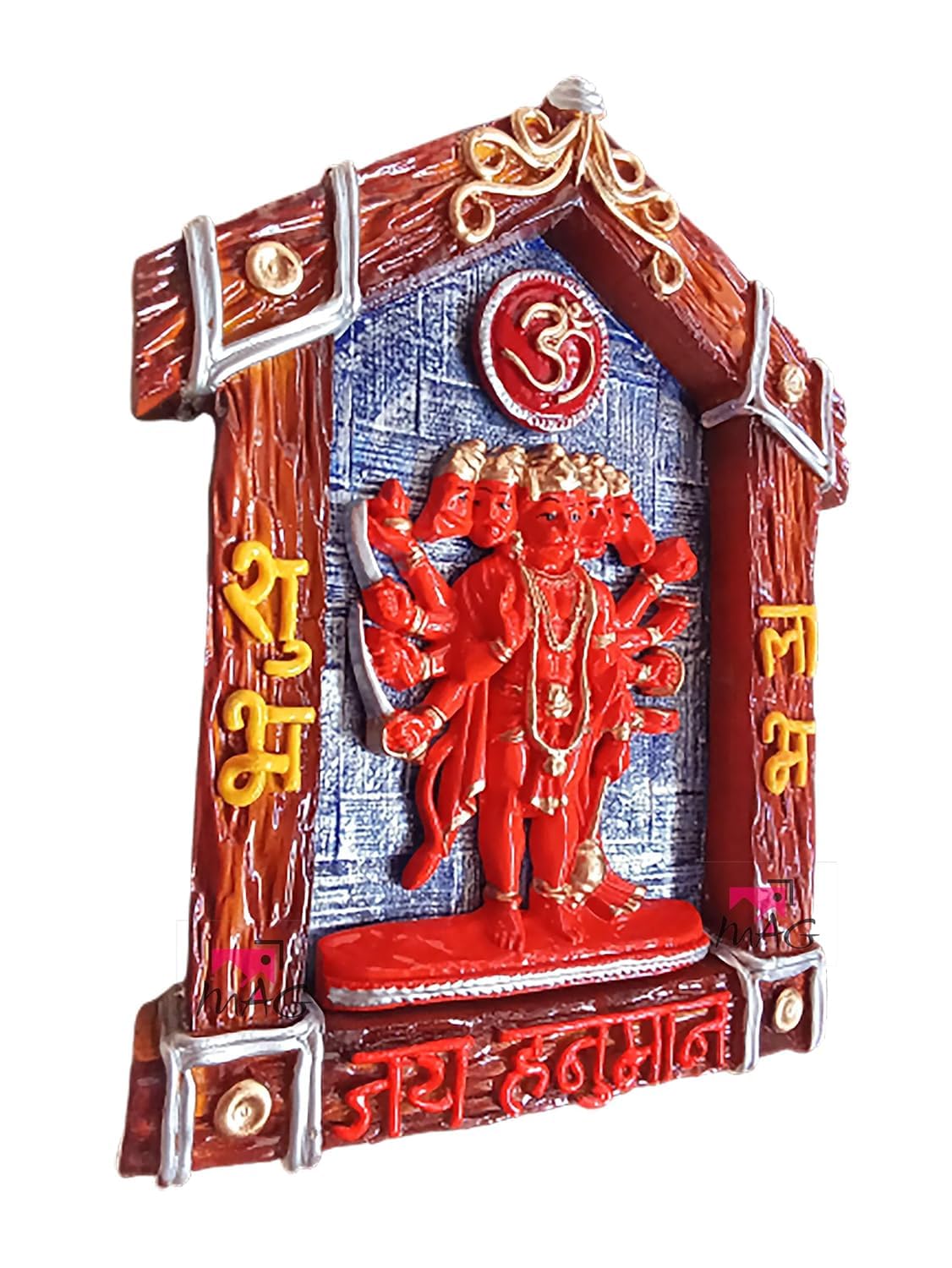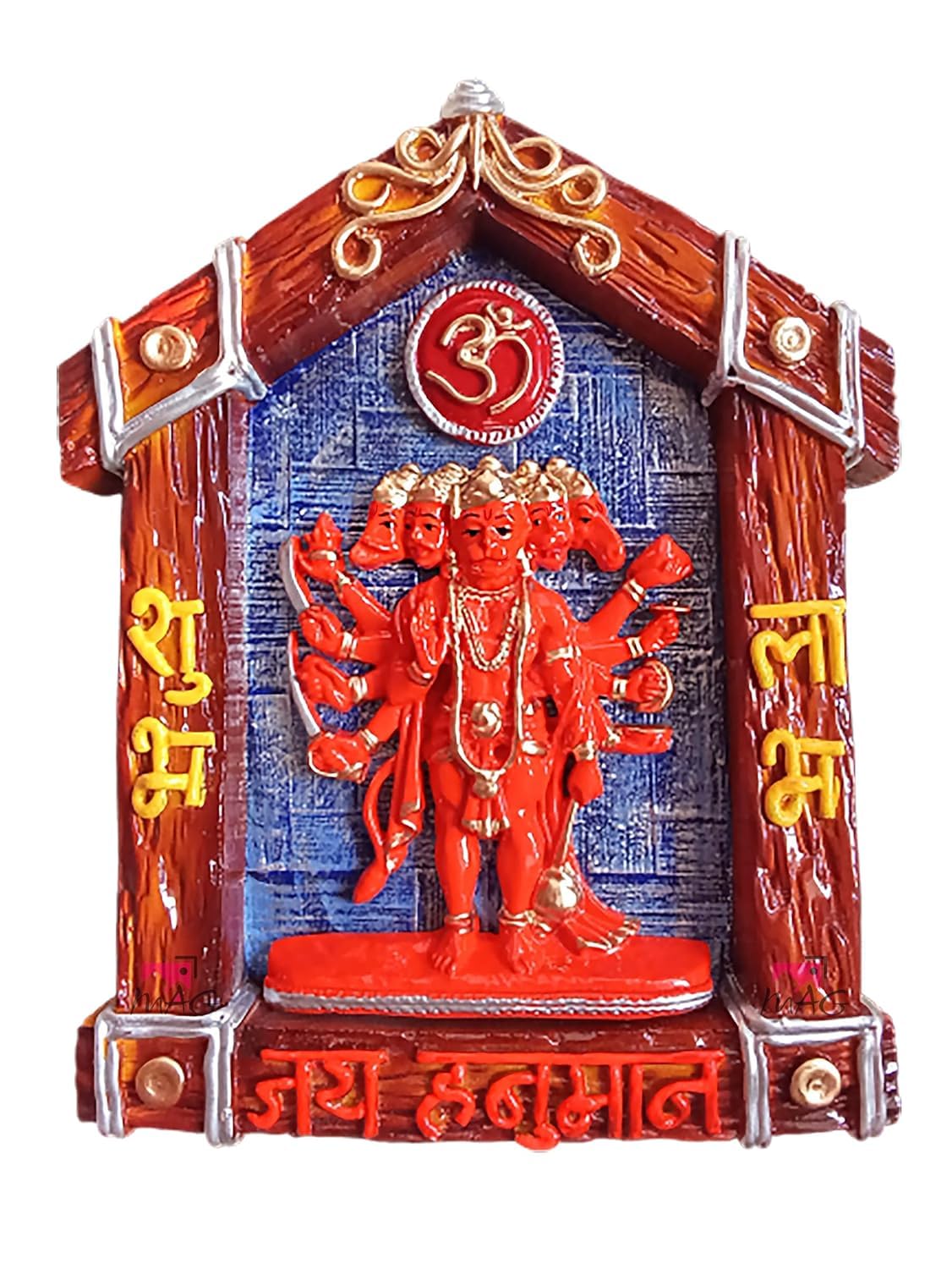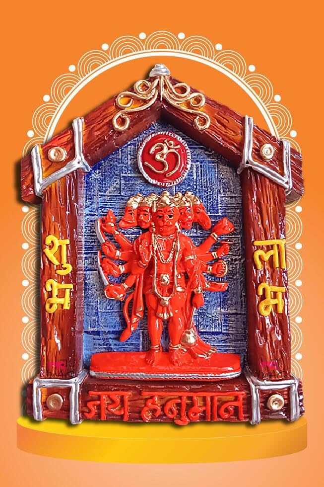 One-of-a-kind and modern, this wall décor piece is exquisitely crafted from durable resin. A lovely gift for holidays, birthdays or spiritual moments, complementing your living space, study or prayer area. Celebrate devotion with this Hanuman idol – a striking home décor piece and a meaningful gift for festivals like Diwali and Navaratri. Divine Panchmukhi Hanumanji: Depicts the powerful five- form of Lord Hanuman, symbolizing strength, protection, and blessings from five directions. Fortunate Vastu Element: Believed to bring positive energy, prosperity, and harmony according to Vastu Shastra, making it " Meaningful Gift: A thoughtful and spiritually significant gift for housewarmings, festivals (like Diwali, Hanuman Jayanti), or any fortunate occasion. Spiritual and Decorative: Serves as both a sacred devotional item and a stunning piece of classic Indian wall home decor. Durable Construction: Made from high- materials (likely polyresin or similar, based on visual and typical product type), ensuring longevity and vibrant colour retention. Ready to Hang: Designed for easy wall mounting, allowing you to quickly incorporate this spiritual artifact into your home decor. A wonderful gift for loved ones and collectors. An excellent choice for hanuman home decor, hanuman gift ideas and panchmukhi hanuman for entrance, this Hanuman idol blends sacred symbolism with striking design—