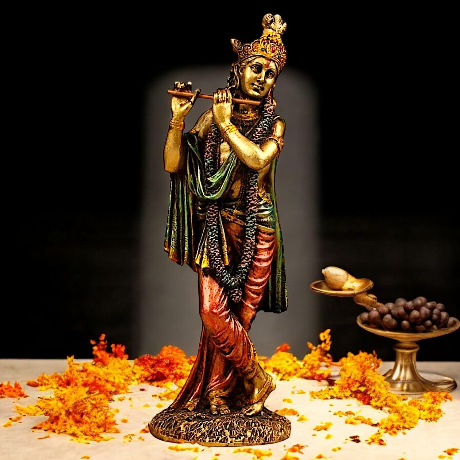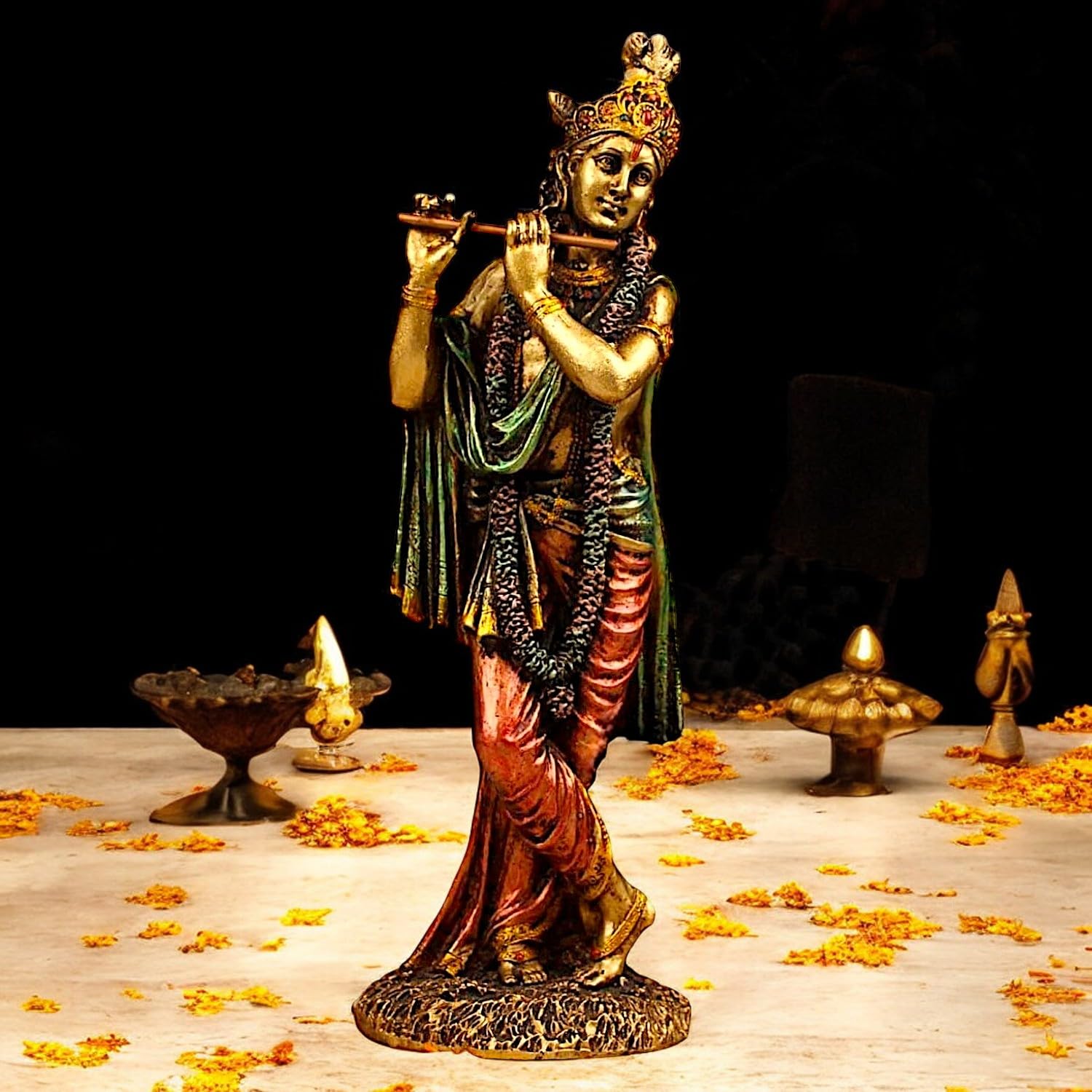 Chic and spiritual, this Krishna idol is meticulously crafted from resin-made. A wonderful housewarming or festival gift, decorating your dining room, entryway or home temple. Elevate your space with this mantra wall hanging, a spiritual home décor piece and meaningful gift for Diwali and housewarmings. Great for seekers of namokar mantra wall hanging, navkar mantra wall decor and navkar mantra frame design, this wall hanging infuses your home with spiritual and cultural depth.