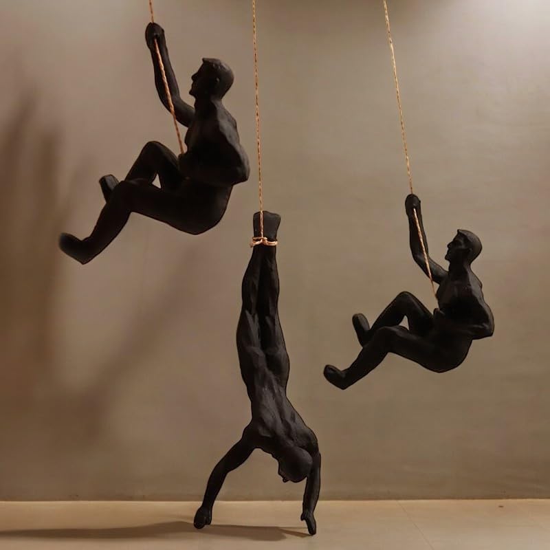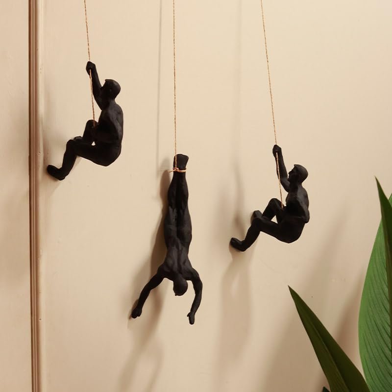 Distinctive and current, this decorative accent is skillfully crafted from durable resin. A heartwarming gift for family and friends, brightening up any nook, workspace or spiritual corner. Transform your home décor with this stylish piece that also makes a perfect Diwali or housewarming gift. Striking Wall Art Trio One-Of-A-Kind climbing men figurines create a dramatic 3D look on any wall. Matte Black Resin-Crafted Finish Crafted in sturdy resin-crafted with a chic matte finish for a contemporary feel. Emblem of Strength and Drive Designed to complement modern and traditional interiors. A versatile décor piece for those searching for decor kart, homedecor.cart and home decor.kart, perfect for elevating your home style or gifting.