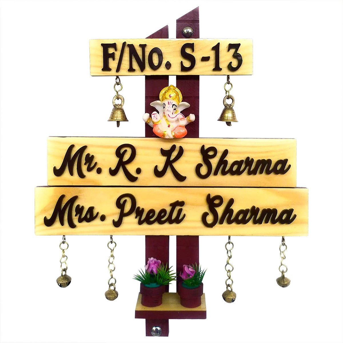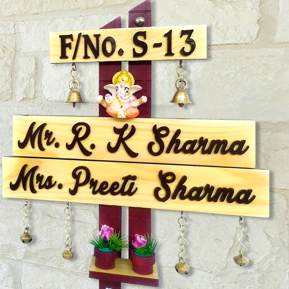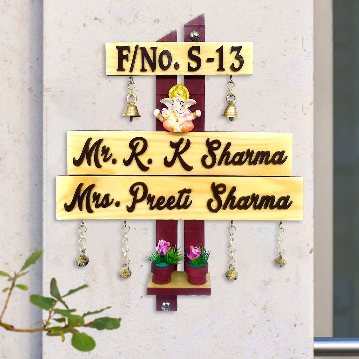 Chic and fashionable, this custom name plate is exquisitely crafted from polished wood. An ideal gift for housewarmings and festivals, suiting any living room, meditation area or office. Personalize your entryway with this custom name plate, a stylish home décor accent and heartfelt housewarming gift. Enhance your living or working space with our exquisite wooden name plates, perfect for adding a personalized touch to apartments and offices or as a one-of-a-kind, thoughtful gift. These name plates are meticulously crafted from high- wood, ensuring exceptional durability and longevity. Our name plates are more than just identifiersthey are a statement of style and individuality. With our extensive customization options, you can create a name plate that perfectly reflects your personality and taste. Choose from a variety of designs, fonts, and engraving options to make your name plate truly one- Key Features: Durable and Long- Constructed from high-quality wood, these name plates are designed to withstand the test of time, maintaining their elegance and integrity for years. Fully Customizable: Tailor your name plate to your liking with numerous design options, including different fonts, motifs, and personalized engravings. Versatile Applications: Sophisticated Aesthetic: Each name plate exudes a sense of refinement and style, making it a perfect addition to any dcor. Why Choose Our Wooden Name Plates? High- Craftsmanship: Our name plates are crafted with precision and care, ensuring each piece meets the highest standards of durable and beauty. Personal Touch: A customizable name plate adds a personal touch to your home or office, making it uniquely yours. Perfect Gift: Looking for a memorable and meaningful gift? A personalized wooden name plate is Sustainable Choice: Made from responsibly sourced wood, our name plates are an eco- option for conscientious consumers. Customization Options: Designs: From minimalist to ornate, choose a design that complements your style. Fonts: We have already chosen the best fonts for you and displayed them over the listing for better understanding. Engravings: Include names, titles, special dates, or even short messages to make it extra special. Transform your space with a wooden name plate that combines elegance, durability, and personal flair. Whether for your own use or as a cherished gift, our customizable name plates are a timeless addition to any environment. Perfect for adding a stylish accent to your living space. If you're seeking name plate design, house number plate and outdoor house number plate, this customized name plate enhances your home's entrance with a personal touch.