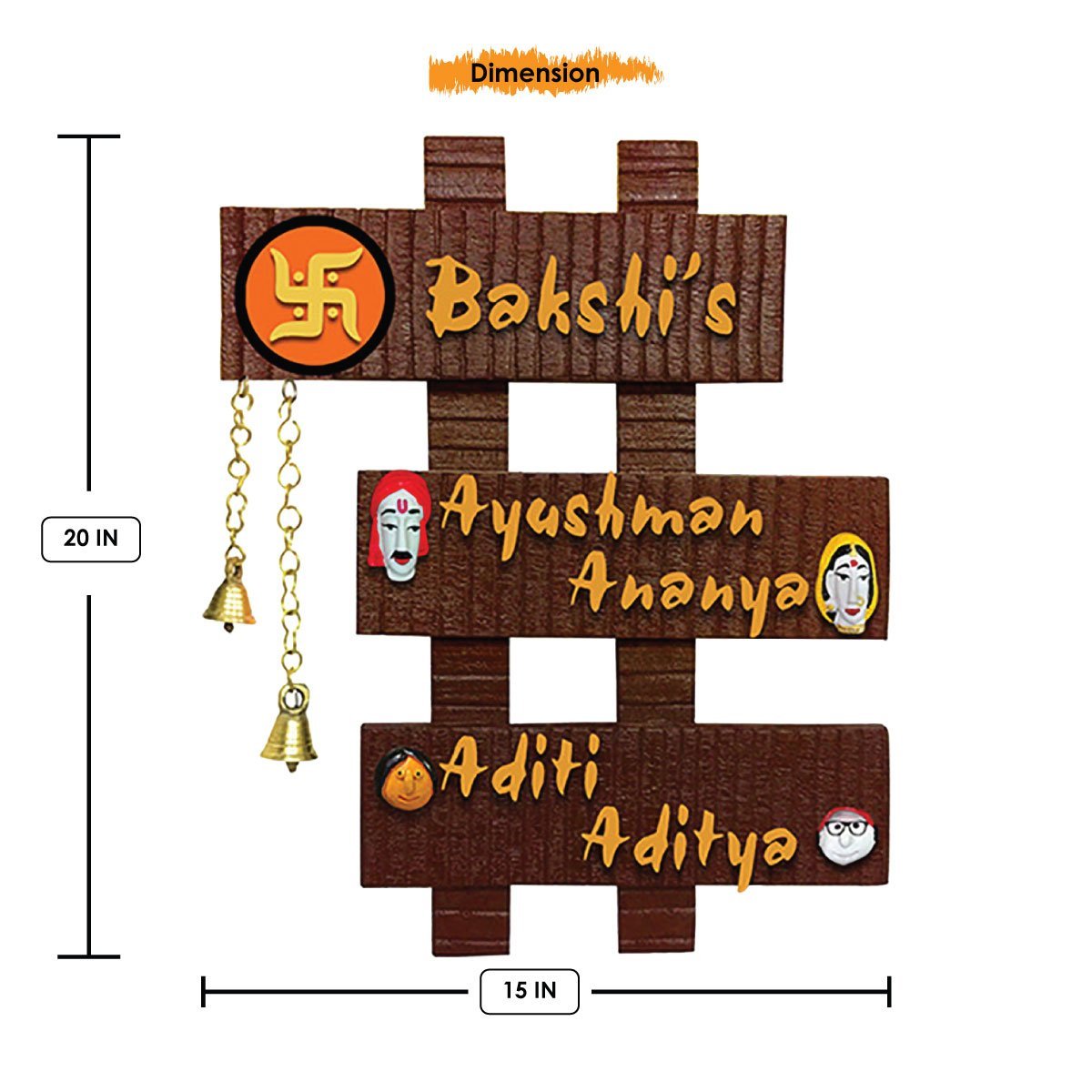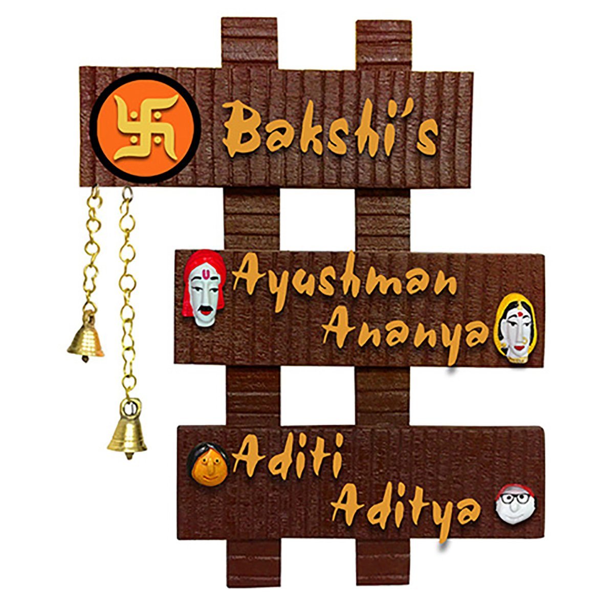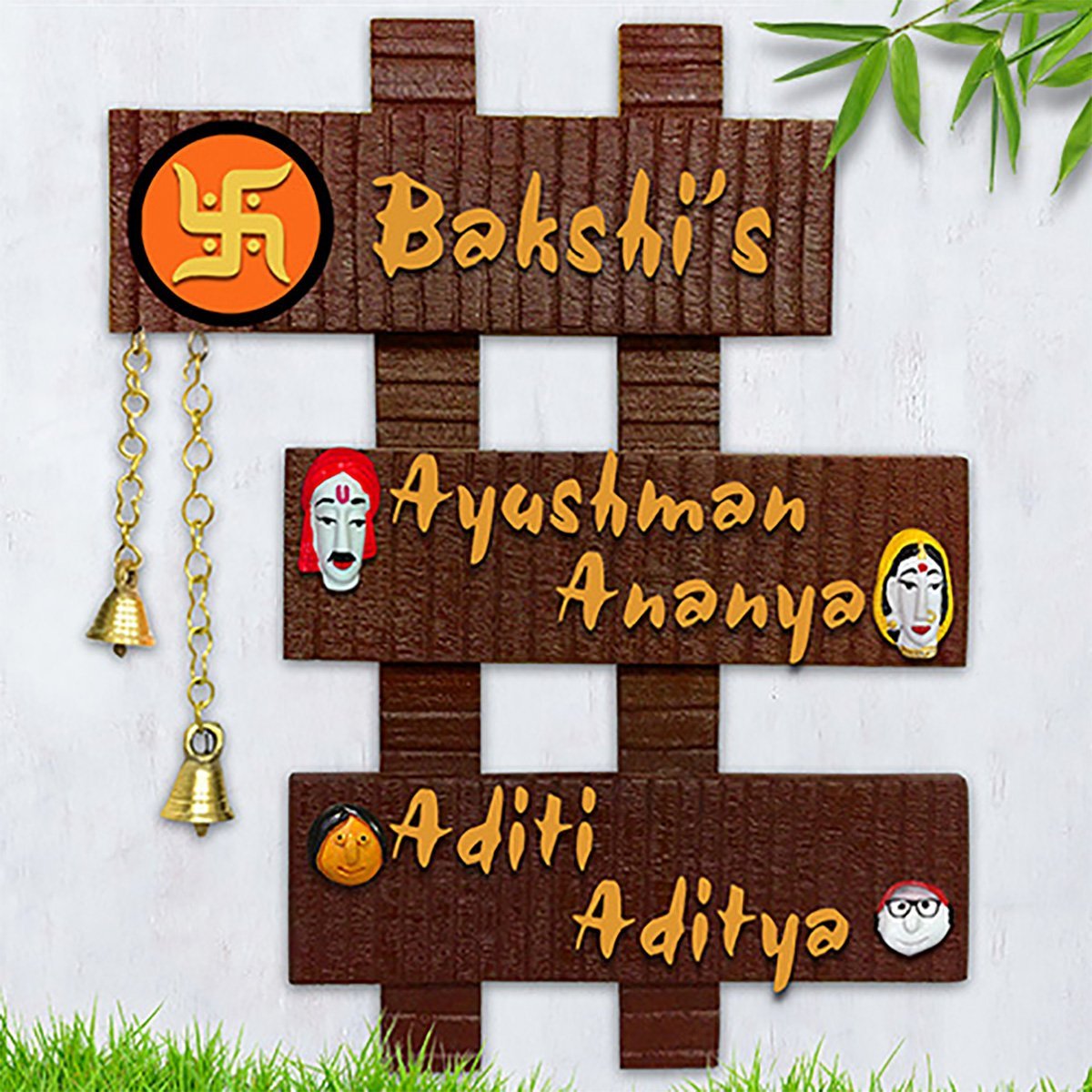 Lavish, this custom name plate is expertly crafted from wooden. A meaningful gift for diwali or special occasions, enhancing your office desk, bookshelf or meditation area. Personalize your entryway with this custom name plate, a stylish home décor accent and heartfelt housewarming gift. Showcase your style with this luxurious family solid. Enhance your living or working space with our exquisite wooden name plates, perfect for adding a personalized touch to apartments and offices or as a distinctive, thoughtful gift. These name plates are meticulously crafted from high- wood, ensuring exceptional durability and longevity. Our name plates are more than just identifiersthey are a statement of style and individuality. With our extensive customization options, you can create a name plate that perfectly reflects your personality and taste. Choose from a variety of designs, fonts, and engraving options to make your name plate truly one- Key Features: Durable and Long- Constructed from luxury wood, these name plates are designed to withstand the test of time, maintaining their elegance and integrity for years. Fully Customizable: Tailor your name plate to your liking with numerous design options, including different fonts, motifs, and personalized engravings. Versatile Applications: Sophisticated Aesthetic: Each name plate exudes a sense of refinement and style, making it a perfect addition to any dcor. Why Choose Our Wooden Name Plates? High- Craftsmanship: Our name plates are crafted with precision and care, ensuring each piece meets the highest standards of quality and beauty. Personal Touch: A customizable name plate adds a personal touch to your home or office, making it uniquely yours. Perfect Gift: Looking for a memorable and meaningful gift? A personalized wooden name plate is Sustainable Choice: Made from responsibly sourced wood, our name plates are an eco- option for conscientious consumers. Customization Options: Designs: From minimalist to ornate, choose a design that complements your style. Fonts: We have already chosen the best fonts for you and displayed them over the listing for better understanding. Engravings: Include names, titles, special dates, or even short messages to make it extra special. Transform your space with a wooden name plate that combines elegance, durability, and personal flair. Whether for your own use or as a cherished gift, our customizable name plates are a timeless addition to any environment. Suitable for display on shelves, mantels, or desks. If you're seeking name plate design, house number plate and outdoor house number plate, this customized name plate enhances your home's entrance with a personal touch.