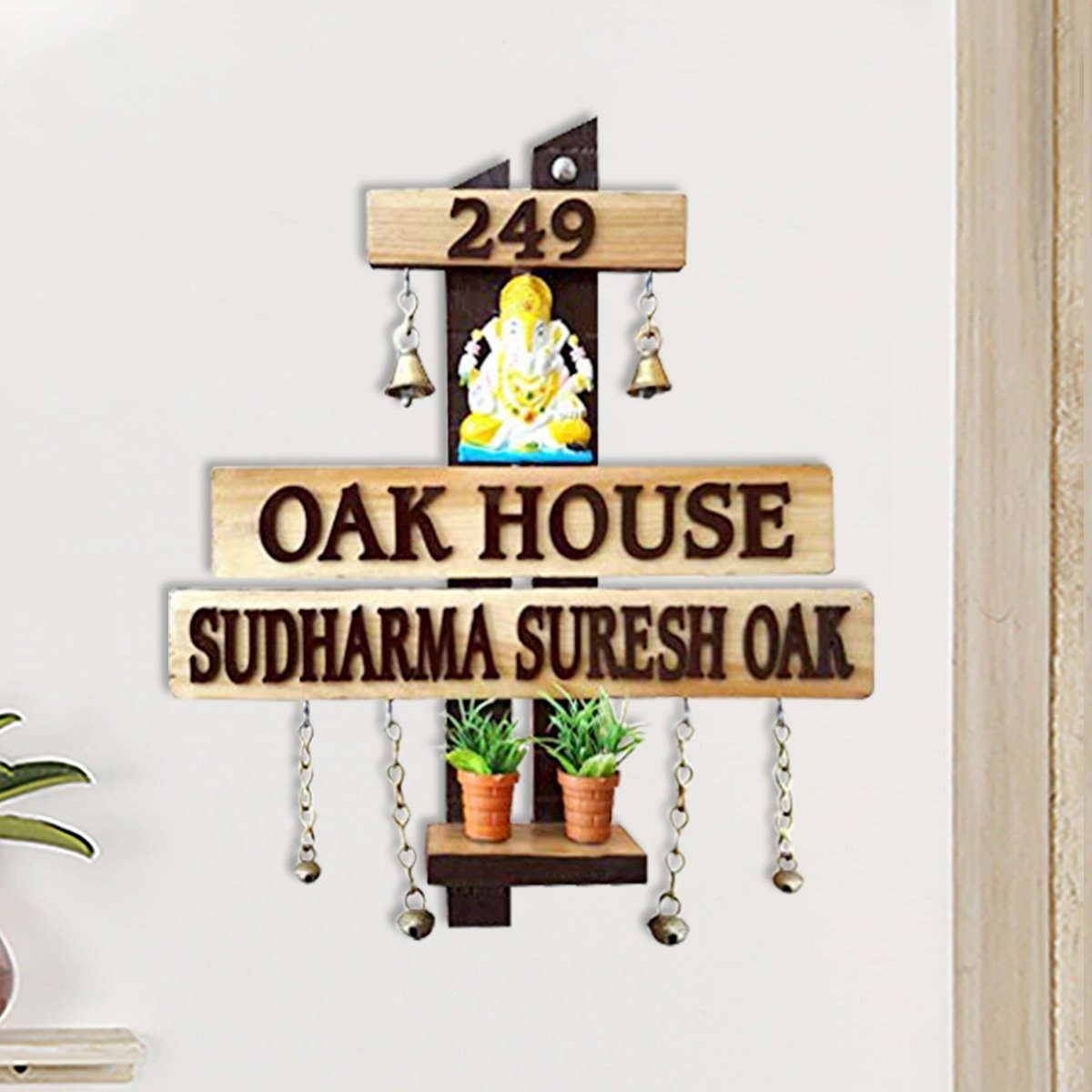 Modern and fashionable, this custom name plate is skillfully crafted from natural wood. A heartwarming gift for family and friends, brightening up any nook, workspace or spiritual corner. Personalize your entryway with this custom name plate, a stylish home décor accent and heartfelt housewarming gift. Enhance your living or working space with our exquisite wooden name plates, perfect for adding a personalized touch to apartments and offices or as a distinctive, thoughtful gift. These name plates are meticulously crafted from high- wood, ensuring exceptional durability and longevity. Our name plates are more than just identifiersthey are a statement of style and individuality. With our extensive customization options, you can create a name plate that perfectly reflects your personality and taste. Choose from a variety of designs, fonts, and engraving options to make your name plate truly one- Key Features: Durable and Long- Constructed from luxury wood, these name plates are designed to withstand the test of time, maintaining their elegance and integrity for years. Fully Customizable: Tailor your name plate to your liking with numerous design options, including different fonts, motifs, and personalized engravings. Versatile Applications: Sophisticated Aesthetic: Each name plate exudes a sense of refinement and style, making it a perfect addition to any dcor. Why Choose Our Wooden Name Plates? High- Craftsmanship: Our name plates are crafted with precision and care, ensuring each piece meets the highest standards of quality and beauty. Personal Touch: A customizable name plate adds a personal touch to your home or office, making it uniquely yours. Perfect Gift: Looking for a memorable and meaningful gift? A personalized wooden name plate is Sustainable Choice: Made from responsibly sourced wood, our name plates are an eco- option for conscientious consumers. Customization Options: Designs: From minimalist to ornate, choose a design that complements your style. Fonts: We have already chosen the best fonts for you and displayed them over the listing for better understanding. Engravings: Include names, titles, special dates, or even short messages to make it extra special. Transform your space with a wooden name plate that combines elegance, durability, and personal flair. Whether for your own use or as a cherished gift, our customizable name plates are a timeless addition to any environment. A wonderful gift for loved ones and collectors. If you're seeking name plate design, house number plate and outdoor house number plate, this customized name plate enhances your home's entrance with a personal touch.