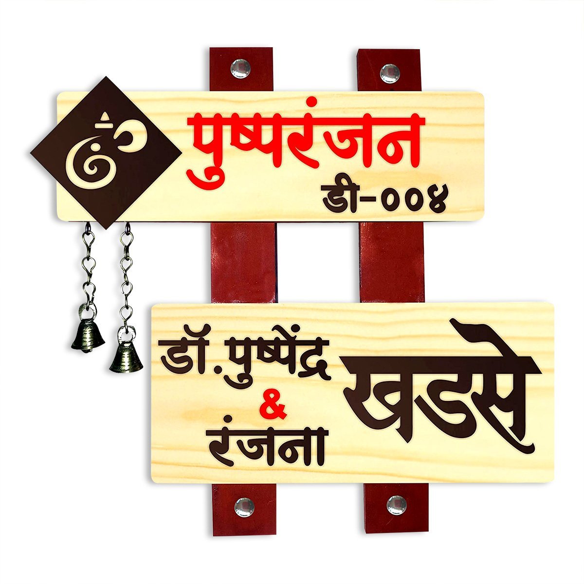 Classic, this custom name plate is expertly crafted from wooden. A thoughtful gift for any occasion, accentuating your living room, office or prayer space. Personalize your entryway with this custom name plate, a stylish home décor accent and heartfelt housewarming gift. Enhance your living or working space with our exquisite wooden name plates, perfect for adding a personalized touch to apartments and offices or as a distinctive, thoughtful gift. These name plates are meticulously crafted from high- wood, ensuring exceptional durability and longevity. Our name plates are more than just identifiersthey are a statement of style and individuality. With our extensive customization options, you can create a name plate that perfectly reflects your personality and taste. Choose from a variety of designs, fonts, and engraving options to make your name plate truly one- Key Features: Durable and Long- Constructed from luxury wood, these name plates are designed to withstand the test of time, maintaining their elegance and integrity for years. Fully Customizable: Tailor your name plate to your liking with numerous design options, including different fonts, motifs, and personalized engravings. Versatile Applications: Sophisticated Aesthetic: Each name plate exudes a sense of refinement and style, making it a perfect addition to any dcor. Why Choose Our Wooden Name Plates? High- Craftsmanship: Our name plates are crafted with precision and care, ensuring each piece meets the highest standards of quality and beauty. Personal Touch: A customizable name plate adds a personal touch to your home or office, making it uniquely yours. Perfect Gift: Looking for a memorable and meaningful gift? A personalized wooden name plate is Sustainable Choice: Made from responsibly sourced wood, our name plates are an eco- option for conscientious consumers. Customization Options: Designs: From minimalist to ornate, choose a design that complements your style. Fonts: We have already chosen the best fonts for you and displayed them over the listing for better understanding. Engravings: Include names, titles, special dates, or even short messages to make it extra special. Transform your space with a wooden name plate that combines elegance, durability, and personal flair. Whether for your own use or as a cherished gift, our customizable name plates are a timeless addition to any environment. Bring charm and elegance to your décor. If you're seeking name plate design, house number plate and outdoor house number plate, this customized name plate enhances your home's entrance with a personal touch.