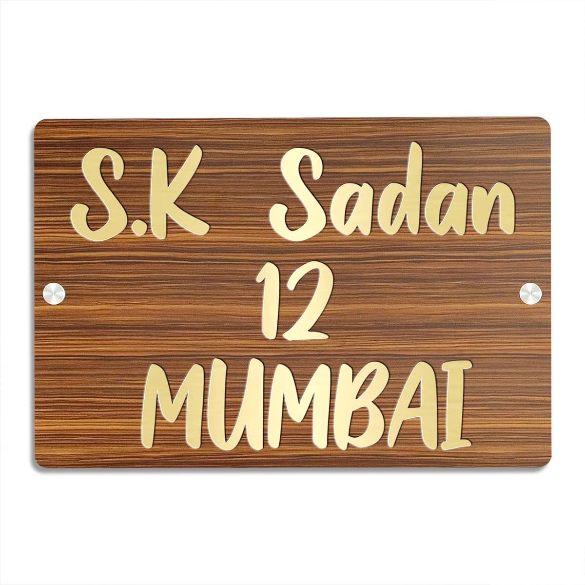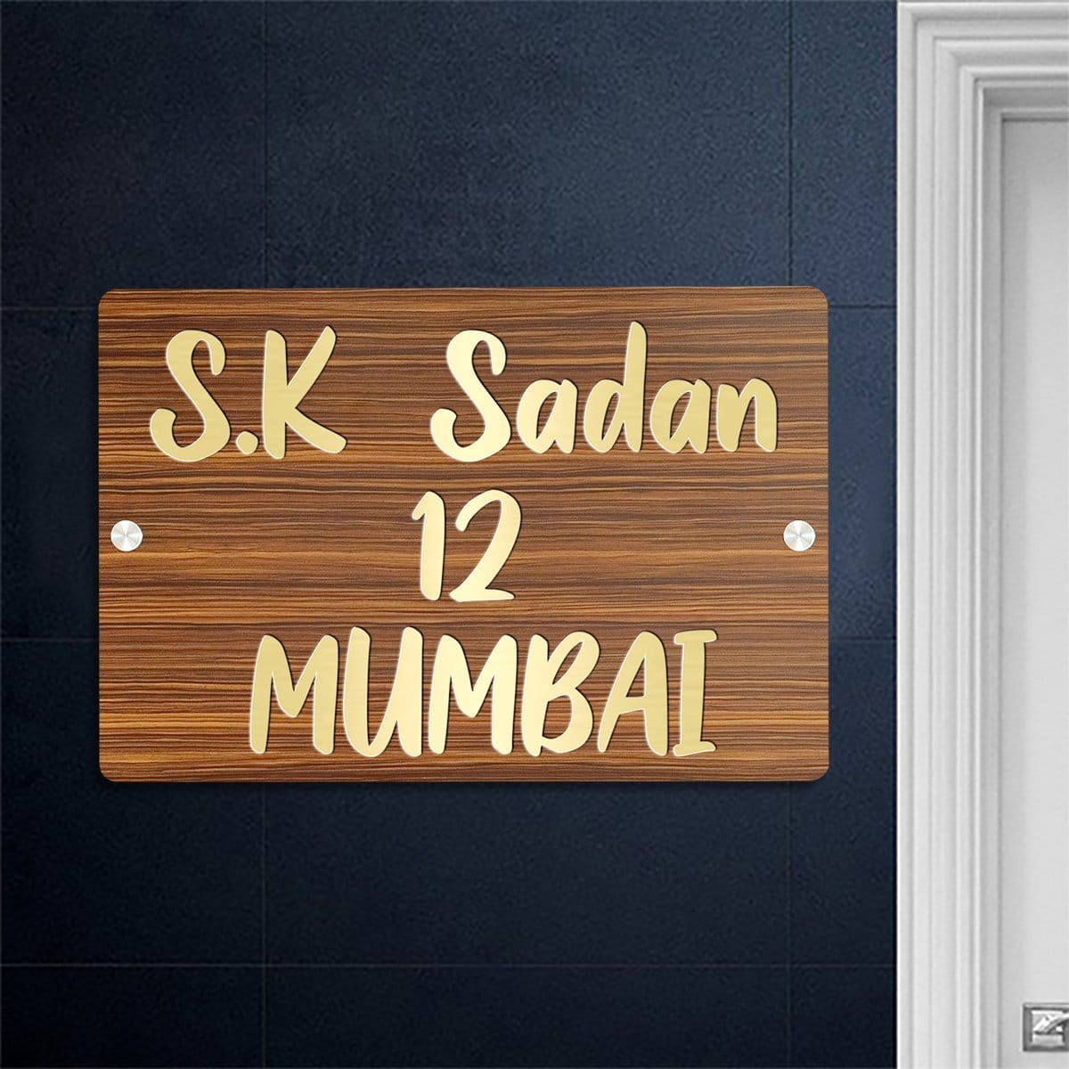Distinctive and chic, this custom name plate is expertly crafted from wooden. A meaningful gift for diwali or special occasions, enhancing your office desk, bookshelf or meditation area. Personalize your entryway with this custom name plate, a stylish home décor accent and heartfelt housewarming gift. Enhance your living or working space with our exquisite wooden name plates, perfect for adding a personalized touch to apartments and offices or as a one-of-a-kind, thoughtful gift. These name plates are meticulously crafted from high- wood, ensuring exceptional durability and longevity. Our name plates are more than just identifiersthey are a statement of style and individuality. With our extensive customization options, you can create a name plate that perfectly reflects your personality and taste. Choose from a variety of designs, fonts, and engraving options to make your name plate truly one- Key Features: Durable and Long- Constructed from high-quality wood, these name plates are designed to withstand the test of time, maintaining their elegance and integrity for years. Fully Customizable: Tailor your name plate to your liking with numerous design options, including different fonts, motifs, and personalized engravings. Versatile Applications: Sophisticated Aesthetic: Each name plate exudes a sense of refinement and style, making it a perfect addition to any dcor. Why Choose Our Wooden Name Plates? High- Craftsmanship: Our name plates are crafted with precision and care, ensuring each piece meets the highest standards of durable and beauty. Personal Touch: A customizable name plate adds a personal touch to your home or office, making it uniquely yours. Perfect Gift: Looking for a memorable and meaningful gift? A personalized wooden name plate is Sustainable Choice: Made from responsibly sourced wood, our name plates are an eco- option for conscientious consumers. Customization Options: Designs: From minimalist to ornate, choose a design that complements your style. Fonts: We have already chosen the best fonts for you and displayed them over the listing for better understanding. Engravings: Include names, titles, special dates, or even short messages to make it extra special. Transform your space with a wooden name plate that combines elegance, durability, and personal flair. Whether for your own use or as a cherished gift, our customizable name plates are a timeless addition to any environment. Designed to complement modern and traditional interiors. If you're seeking name plate design, house number plate and outdoor house number plate, this customized name plate enhances your home's entrance with a personal touch.
