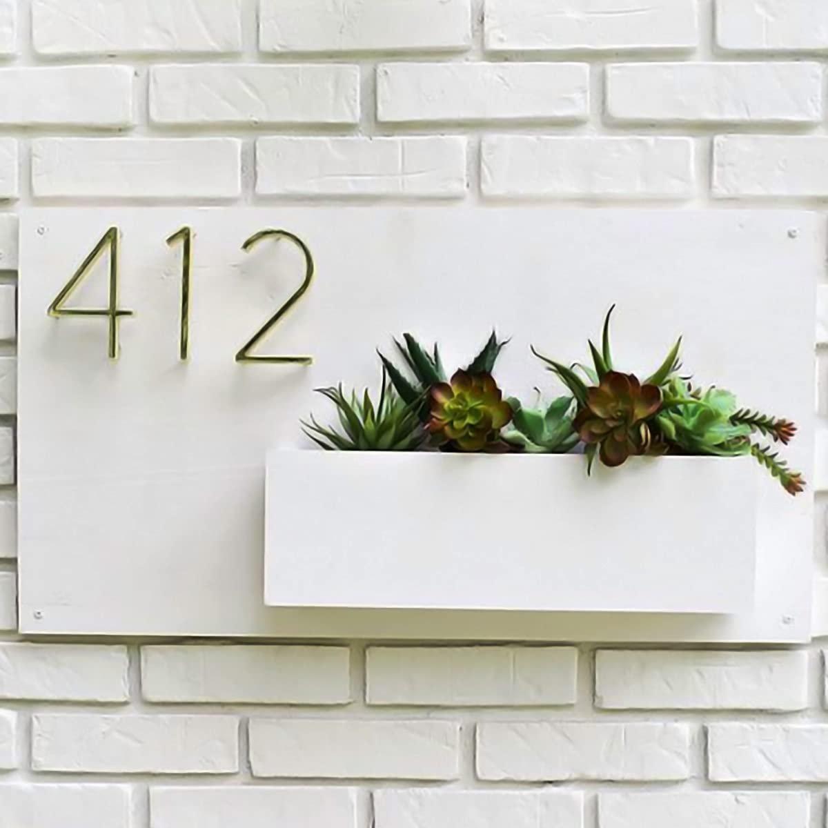 Classic and chic, this decorative accent is meticulously crafted from handcrafted wood. A wonderful housewarming or festival gift, decorating your dining room, entryway or home temple. Personalize your entryway with this custom name plate, a stylish home décor accent and heartfelt housewarming gift. Contemporary and Fashionable Design: A sleek, minimalist white plaque with brass- house numbers (e. "412") for a contemporary look. Integrated Succulent Planter: Features a small, attached planter box perfect for displaying stunning, low- succulents or other small plants. Enhances Curb Appeal: Adds a touch of sophistication and greenery to your home' exterior, making a great first impression. Durable and Weather- Made with materials designed to withstand outdoor elements (assuming it' for outdoor use). Customizable: Often available with custom house numbers to perfectly match your address. Distinctive Housewarming Gift: A thoughtful and practical gift for new homeowners or anyone looking to personalize their entryway. Bring charm and elegance to your décor. If you're seeking name plate design, house number plate and outdoor house number plate, this customized name plate enhances your home's entrance with a personal touch.